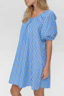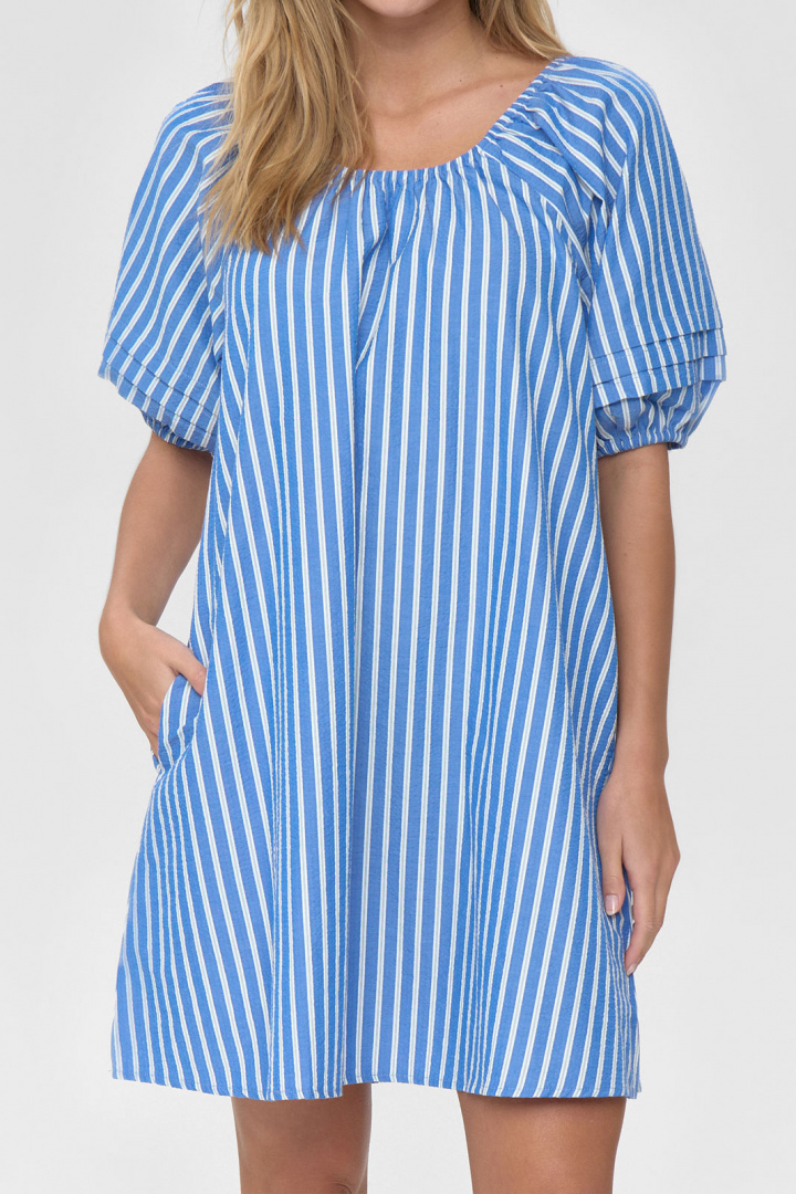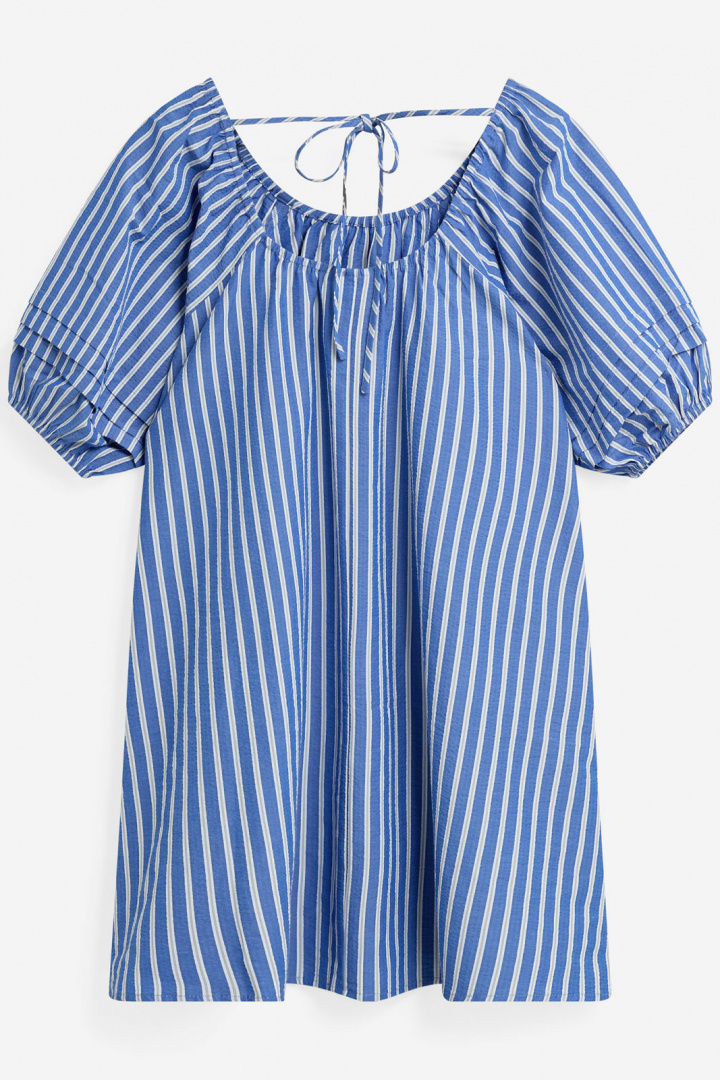 Aviaja Dress 4626 från Moves är en damklänning som sätter komfort och stil i fokus med en avslappnad, lös passform. Den runda halsringningen präglas av en praktisk resår och snörning som ger en lätt justerbar, snygg detalj runt halsen. Den randiga designen ger ett tidlöst uttryck som fungerar både till vardags och lediga helger. Praktiska öppna sidofickor gör det enkelt att ha småsaker nära till hands utan att kompromissa med stilen. Ärmarna avslutas med resår, vilket ger en behaglig passform och en skön försänkning som lämnar fri rörlighet. Tillverkad i en bomull/polyester-blandning (50% bomull och 50% polyester) som kombinerar mjukhet med hållbarhet och enkel skötsel. Denna klänning är ett smart val för dig som söker en bekväm, lättburen och stilren randig klänning som rymmer vardagliga aktiviteter lika väl som ett avslappnat socialt tillfälle. Aviaja Dress 4626 är därmed ett prisvärt tillskott till en mångsidig garderob som vill känna sig bekväm utan att tumma på stil och kvalitet.