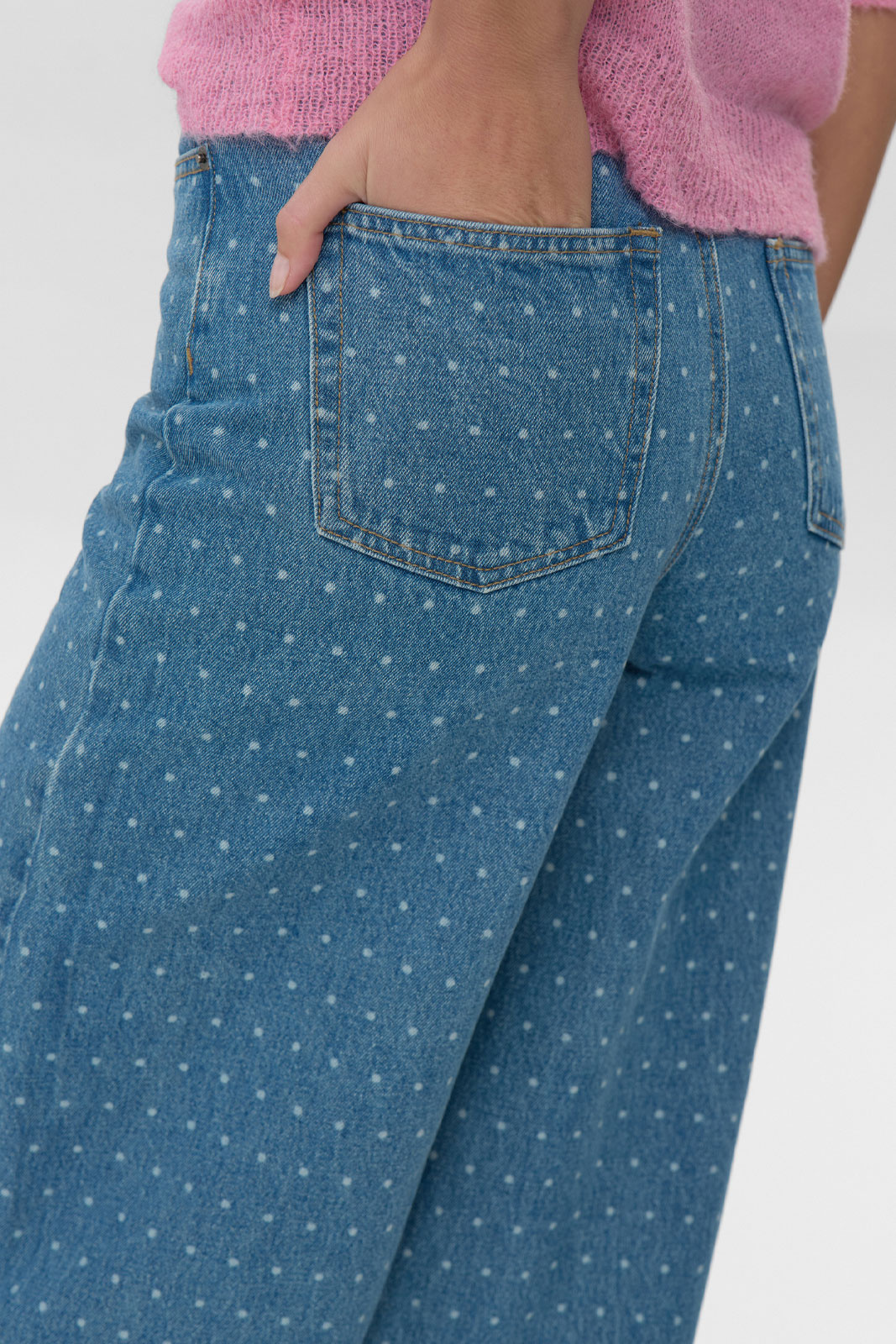 Jeans från Moves.Hellas Jeans 4616.Artikelnummer: 246634616- Hög midja- Barrel fit- Avslappnad passform runt låren och smalnar av mot anklarna- Knapp med zipgylf- Femficksmodell- Prickig- Jeans damUpptäck Hellas Jeans 4616 från Moves, en högmidjad jeans som kombinerar komfort och stil i en smart Barrel fit. Den avslappnade passformen runt låren som smalnar av mot anklarna ger en modern siluett utan att kompromissa med rörelsefriheten, vilket gör den lika praktisk till vardags som till lite mer uppklädda outfits. Den klassiska femficksdesignen med knäppning och zipgylf ger en trygg och bekväm funktion, medan den prickiga finishen ger en lekfull detalj som gör jeansen lätta att bära året runt.Tillverkad i 100% bomull ger Hellas Jeans 4616 naturlig komfort och en mjuk känsla mot huden samtidigt som materialets hållbarhet kommer till uttryck i varje söm. Denna modell är ett utmärkt val om du söker en tidlös, högmidjad jeans som passar olika stilar och tillfällen - från vardagsnära looks med sneakers och tee till uppklädda kombinera med skjorta eller blazer för en mer polerad look. Den prickiga designen gör jeansen till ett statement som enkelt kan byggas vidare på, utan att känna sig överdriven. Välj Hellas Jeans 4616 för en jeans som erbjuder både form och funktion, med en passform som följer kroppen och en design som håller stilen över tid.Tack för att du handlar i vår webbshop. Besök oss även i vår butik i Vingåker. Läs mer på www.vfo.se