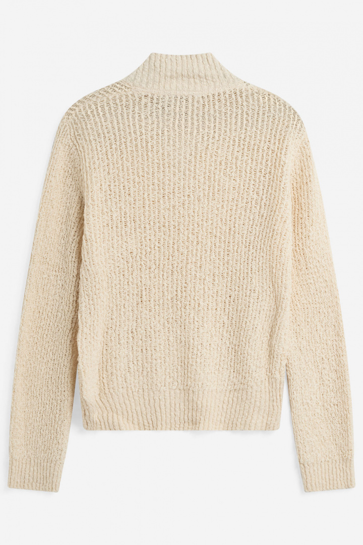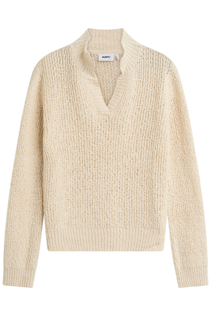 Notta Knit 4636 Tröja från Moves är en damtröja med normal passform som kombinerar enkel elegans med vardagskomfort. Den är V-ringad med krage, en detalj som ger en sofistikerad men avslappnad stil som passar såväl vardagskollektioner som lättare arbetsoutfits. Detaljerna fortsätter i mudd i krage, ärmslut och nedtill, vilket ger en tydlig och behaglig siluett som behåller formen säsong efter säsong. Tillverkad i 100% bomull känns tröjan mjuk mot huden och är behaglig att bära hela dagen, samtidigt som den andas och känns sval under varma dagar och varm under svalare dagar när den kombineras med ett lager under. Den stickade strukturen ger textur och karaktär utan att vara tung eller skrymmande, vilket gör Notta Knit 4636 till ett pålitligt basplagg i varje garderob. Stilmässigt passar den perfekt både till jeans för en avslappnad vardagslook och under en kavaj för en mer polerad outfit, utan att förlora sin rena, tidlösa charm. Välj denna tröja från Moves när du söker en komfortabel och stilren bomullströja som håller formen och känns skön hela dagen. Notta Knit 4636 är därmed ett mycket bra val för dig som vill ha en naturlig, lättmatchad och långvarig stickad tröja dam i bomull.