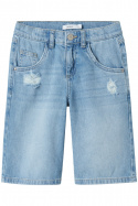 Jeansshorts från Name It.Nkfbella Skater Shorts 5630-be.Artikelnummer: 13241821- Normal midja- Raka ben- Justerbar midja med resår och knapp- Femficksmodell- Hake och zipgylf- Slitna detaljer- Jeansshorts barnNkfbella Skater Shorts 5630-be - Perfekta jeansshorts för barnGe ditt barn en stilfull och bekväm look med Nkfbella Skater Shorts 5630-be från Name It! Dessa jeansshorts är designade för aktiva barn och kombinerar både funktion och stil med sina slitstarka material och praktiska detaljer. Nkfbella Skater Shorts har en normal midja och raka ben, vilket ger en modern och avslappnad siluett. Den justerbara midjan med resår och knapp säkerställer en perfekt passform som växer med ditt barn. Med en femficksmodell och en hake samt zipgylf har shortsens funktionalitet verkligen satts i fokus.Tillverkade av en blandning av 50% ekologisk bomull och 50% polyester, är dessa shorts både mjuka och slitstarka. Den ekologiska bomullen bidrar till en hållbar och miljövänlig produkt, vilket är en viktig aspekt för medvetna föräldrar. Inuti shorts finns ett foder av 48% bomull och 52% polyester som ger extra komfort.De slitna detaljerna på shortsens design ger en trendig och ungdomlig känsla. Dessa shorts är också lätta att matcha med en mängd olika toppar, vilket gör dem till ett mångsidigt tillskott i barnets garderob.Dessa jeansshorts är mer än bara kläder; de är en kombination av stil, komfort och hållbarhet. Idealisk för både lek och fritid, är Nkfbella Skater Shorts det perfekta valet för aktiva barn som älskar att uttrycka sin personliga stil. Ge ditt barn frihet att röra sig fritt och känna sig säker i sin look. Välj Nkfbella Skater Shorts 5630-be för klädfavoriter som håller över tid och låter ditt barn stråla i sommarens alla äventyr!Tack för att du handlar i vår webbshop. Besök oss även i vår butik i Vingåker. Läs mer på www.vfo.se
