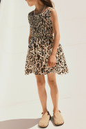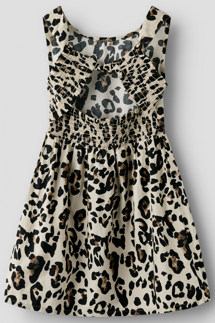 Klänningen är mönstrad och får en söt, lekfull touch tack vare volangen nedtill, vilket skapar fin volym och rörelse utan att kompromissa med komforten. Det här är ett plagg som barnen kan känna sig fria i, oavsett aktiviteter under dagen.