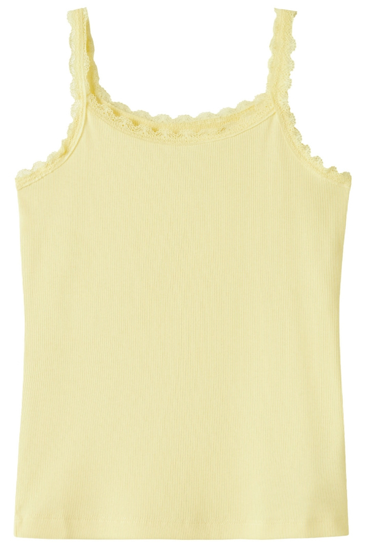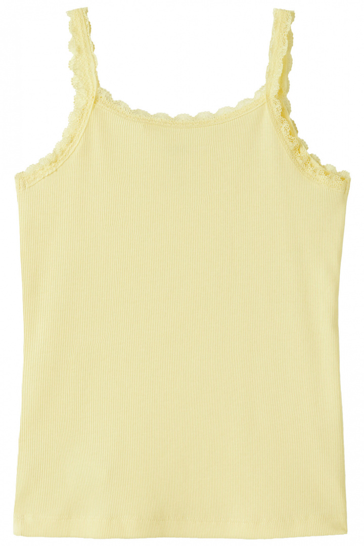 Nkfharisa Slim Strap Top från Name It är en modern och bekväm topp i normal passform som passar barnets aktiva vardag lika bra som lekfulla helger. Den smala axelbanden tillsammans med en klassisk rund halsringning ger en ren, enkel siluett medan spetsdetaljerna ger en lekfull och söt touch som barnet verkligen kan känna sig fin i. Den ribbade strukturen bidrar till mjuk stretch och rörelsefrihet när barnet rör sig, klättrar, cyklar och leker utan att kännas stabbig eller stel. Tillverkad i en hållbar och skön blandning av ekologisk bomull och elastan - 95% ekologisk bomull och 5% elastan - erbjuds en mjuk känsla mot huden och god formhållning som håller längre. Detta gör toppens färger och passform behagliga över tid, även genom många tvättar. Nkfharisa Slim Strap Top är ett utmärkt basplagg som enkelt matchas med jeans, leggings eller shorts och passar året runt. Välj denna topp för en stilren look som barnet gärna tar på sig varje dag, samtidigt som den erbjuder komfort och hållbarhet i en och samma paket.