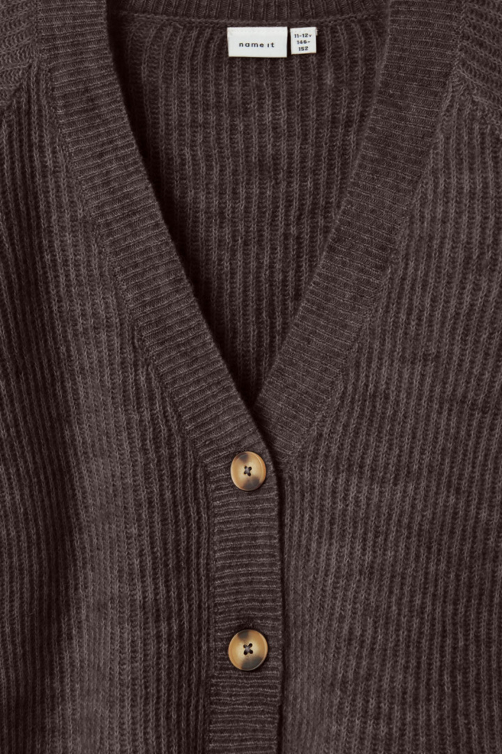 Cardigan från Name It.Nkfholly Boxy Short Knit Card Noos.Artikelnummer: 13237218- Avslappnad passform- V-ringad- Knappknäppning framtill- Stickad- Cardigan barnNkfholly Boxy Short Knit Cardigan - Tröja för BarnGe ditt barn en stilfull och bekväm look med Nkfholly Boxy Short Knit Cardigan från Name It. Denna tröja erbjuder en avslappnad passform som gör den perfekt för lekfulla dagar eller mysiga stunder hemma.Nkfholly Cardigan har en v-ringad hals och en praktisk knappknäppning framtill, vilket gör den både lätt att ta på och av, och ger en modern känsla. Den stickade texturen ger ett mjukt och behagligt intryck - perfekt för både höstpromenader och inomhusmys.Tillverkad av en kvalitetsmix som inkluderar 50 % återvunnen polyester, 29 % polyester, 13 % akryl, 5 % ull och 3 % elastan, är denna cardigan både hållbar och bekväm. Kombinationen av material säkerställer att tröjan inte bara ser bra ut, utan också håller för barnens aktiva livsstil.Denna cardigan är mer än bara en modeaccessoar; den är ett praktiskt och miljövänligt val för barnens garderob. Med sin blandning av stil och funktionalitet ger Nkfholly Cardigan all den komfort och stil som dagens barn behöver.Ge ditt barn en kläder som kombinerar stil, komfort och hållbarhet - välj Nkfholly Boxy Short Knit Cardigan för en trogen följeslagare året runt!Tack för att du handlar i vår webbshop. Besök oss även i vår butik i Vingåker. Läs mer på www.vfo.se