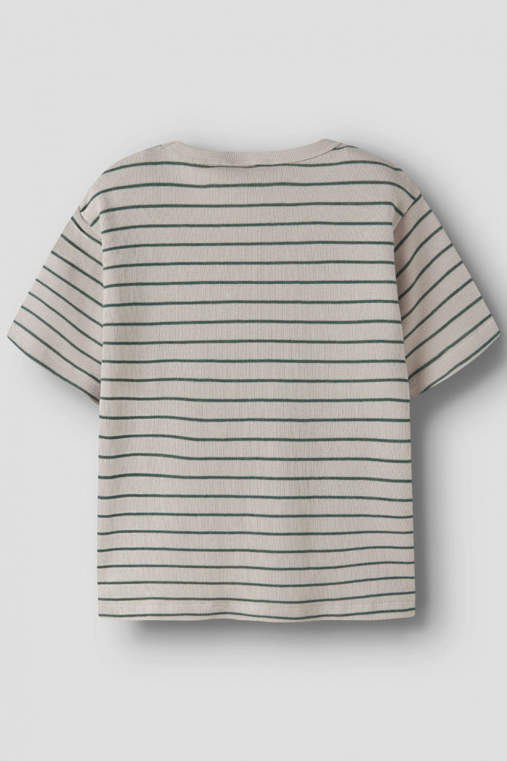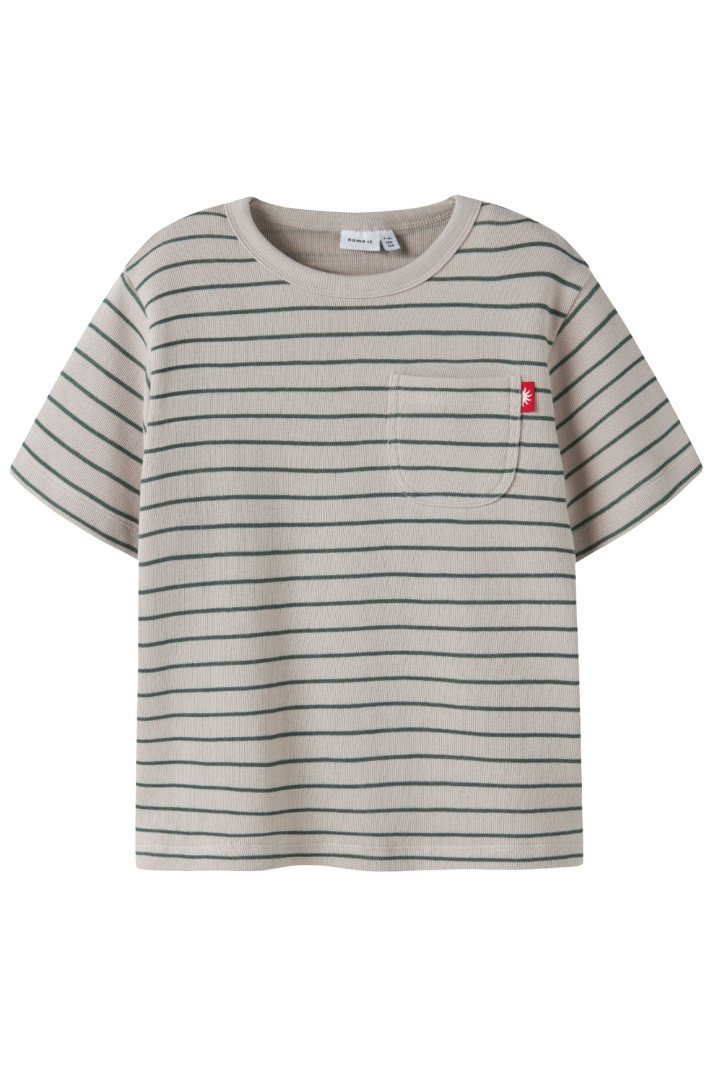 Upptäck Name It:s barn-T-shirt i randig design med normal passform. Den rundade halsringningen ger en mjuk och bekväm känsla för lek och vardag, medan den klassiska randiga looken gör den enkel att matcha med jeans, shorts eller kjolar. En öppen bröstficka tillför en lekfull detalj som barnet kan känna igen och tycka om, utan att kompromissa med komforten eller passformen.