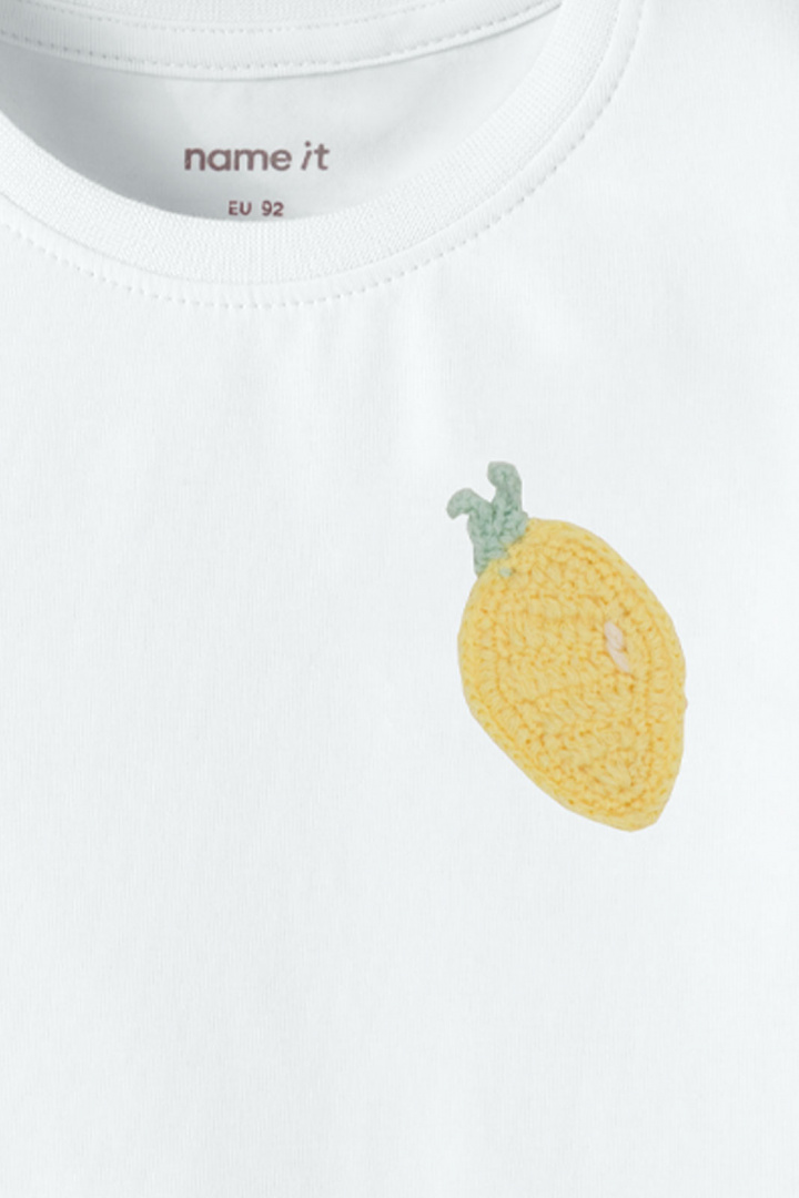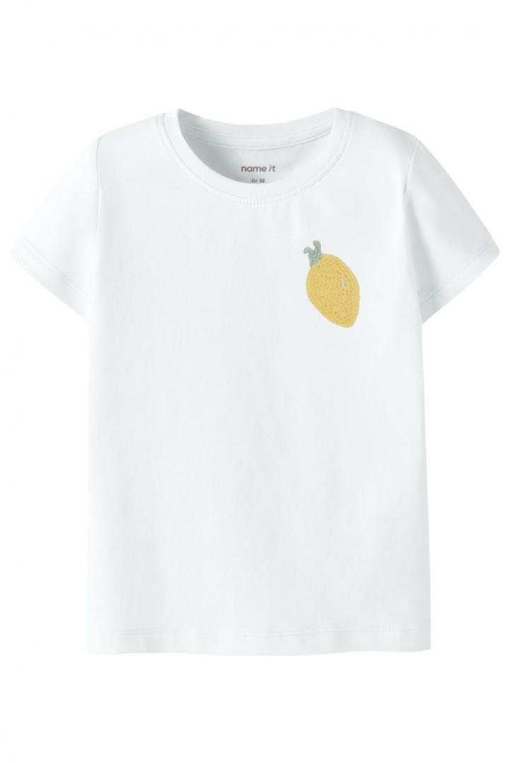 Nmfjuanitta Ss Top Box Topp från Name It är en mjuk t-shirt för barn i normal passform, perfekt för vardag, lek och fritid. Den runda halsringningen känns skön mot huden och gör det enkelt att ta på och av plagget. Det virkade motivet ger en lekfull och unik designdetalj som barnet gärna vill visa upp. Tillverkad av ekologisk bomull, 95%, och elastan, 5%, erbjuder tyget både mjukhet och lite stretch som friar rörelse så att barnet kan leka utan att känna begränsningar. Denna topp är ett smart val för en hållbar garderob - den passar bra till jeans eller shorts och fungerar lika bra till skola som till fritidsaktiviteter. Med Name Its fokus på naturliga material och komfort blir denna t-shirt ett pålitligt val när du vill köpa ett barnplagg som känns bra mot huden och enkelt går att matcha med övriga plagg.