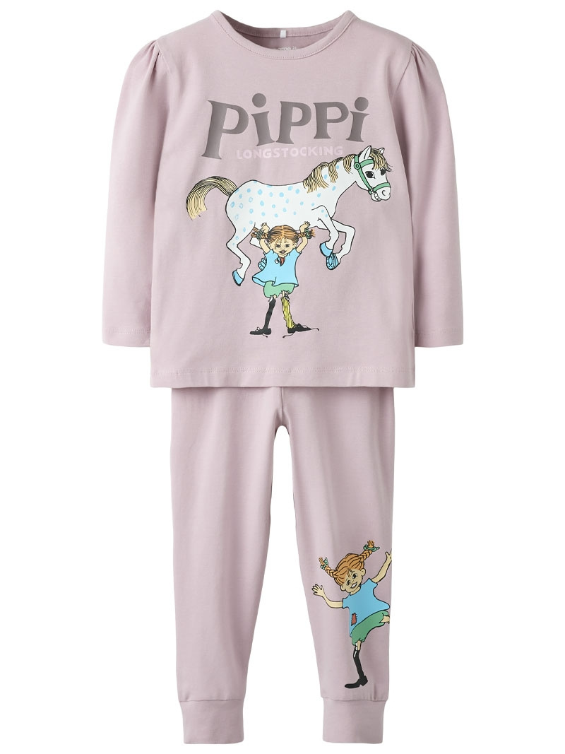 Pyjamas från Name It.NMFSOLEIM PIPPI LS NIGHTSET SKY.Artikelnummer: 13254862- Tröja- Normal passform- Rundad halsringning- Printat tryck- Byxor- Normal midja- Raka ben- Resår i midjan- Printat tryckNmfsoleim Pippi Ls Nightset Sky - Pyjamas från Name ItMjuk och bekväm pyjamas med klassisk Pippi-tryck från Name It. Setet består av en långärmad tröja med rundad halsringning och matchande byxor med resår i midjan. Både tröja och byxa har printat motiv som ger en lekfull och tidlös känsla.Passform och design- Normal passform som ger rörelsefrihet utan att kännas oversized. - Tröjan har rundad halsringning för enkel på- och avklädning. - Byxorna har normal midja, raka ben och resår i midjan för god komfort och stabil passform.Material och känsla- Tillverkad i en mjuk och följsam bomullsblandning: 95% bomull, 5% elastan. - Materialet är mjukt mot huden och ger lagom stretch för aktiva barn.Varför välja detta nattset?- Ett smart och bekvämt val för natten eller lugna hemmakvällar tack vare mjukt material och genomtänkt passform. - Det matchande trycket ger en välkomponerad look som uppskattas av både barn och föräldrar. - Enkel, funktionell design som fungerar vid sovstunder och pyjamasmys.Perfekt för den som söker en bekväm och slitstark barnpyjamas med lekfullt Pippi-motiv. Beställ ditt nattset från Name It för trygga och sköna nätter.Tack för att du handlar i vår webbshop. Besök oss även i vår butik i Vingåker. Läs mer på www.vfo.se