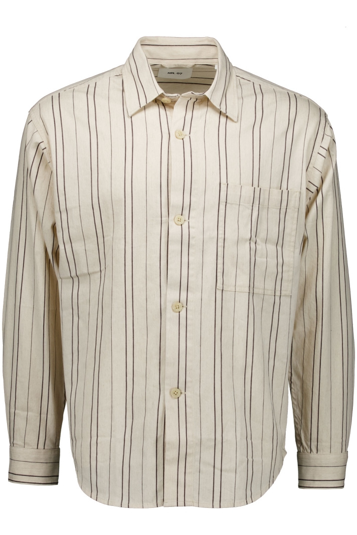 Adwin 5393 - Skjorta från NN07 i normal passform är en randig herrskjorta som förenar klassisk elegans med modern komfort. Den klassiska kragen och den fyrkantiga manschetten ger en sober och stilren look, medan knappknäppningen fram tillför en enkel och funktionell detalj. Den öppna bröstfickan ger plagget en distinkt, avslappnad touch som passar både kontoret och fritiden.