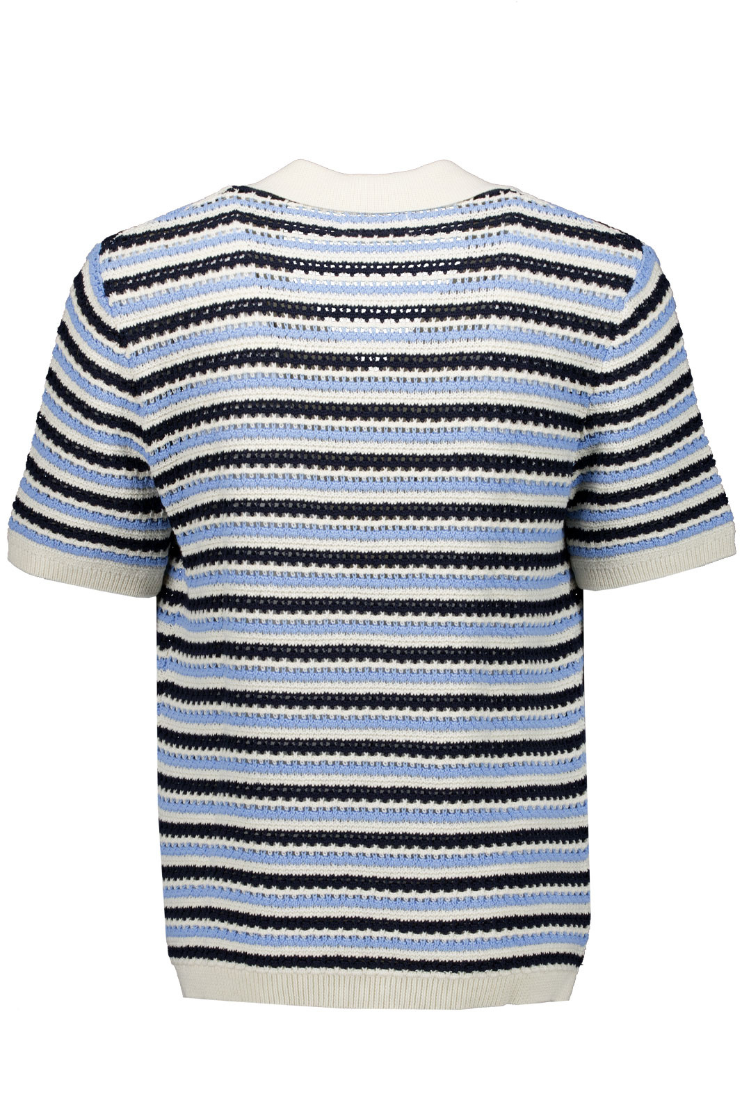 Henry Ss 6636 Tröja från NN07 är en kortärmad stickad tröja i normal passform för herrar som söker en tidlös, bekväm bas i garderoben. Tillverkad i 100% ekologisk bomull erbjuder den ett mjukt, komfortabelt fäste mot huden och ett hållbart val som gör vardags- och vardagsjobbets outfits enklare. Den klassiska bowlingkragen ger ett sportigt men ändå sofistikerat intryck, medan en främre knappknäppning ger frihet att variera stilen efter tillfälle. Slutligen bidrar muddarna i ärmslut och nedtill till bred ribbstickning som håller passformen och ger en ren, avslutad look.