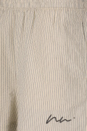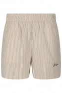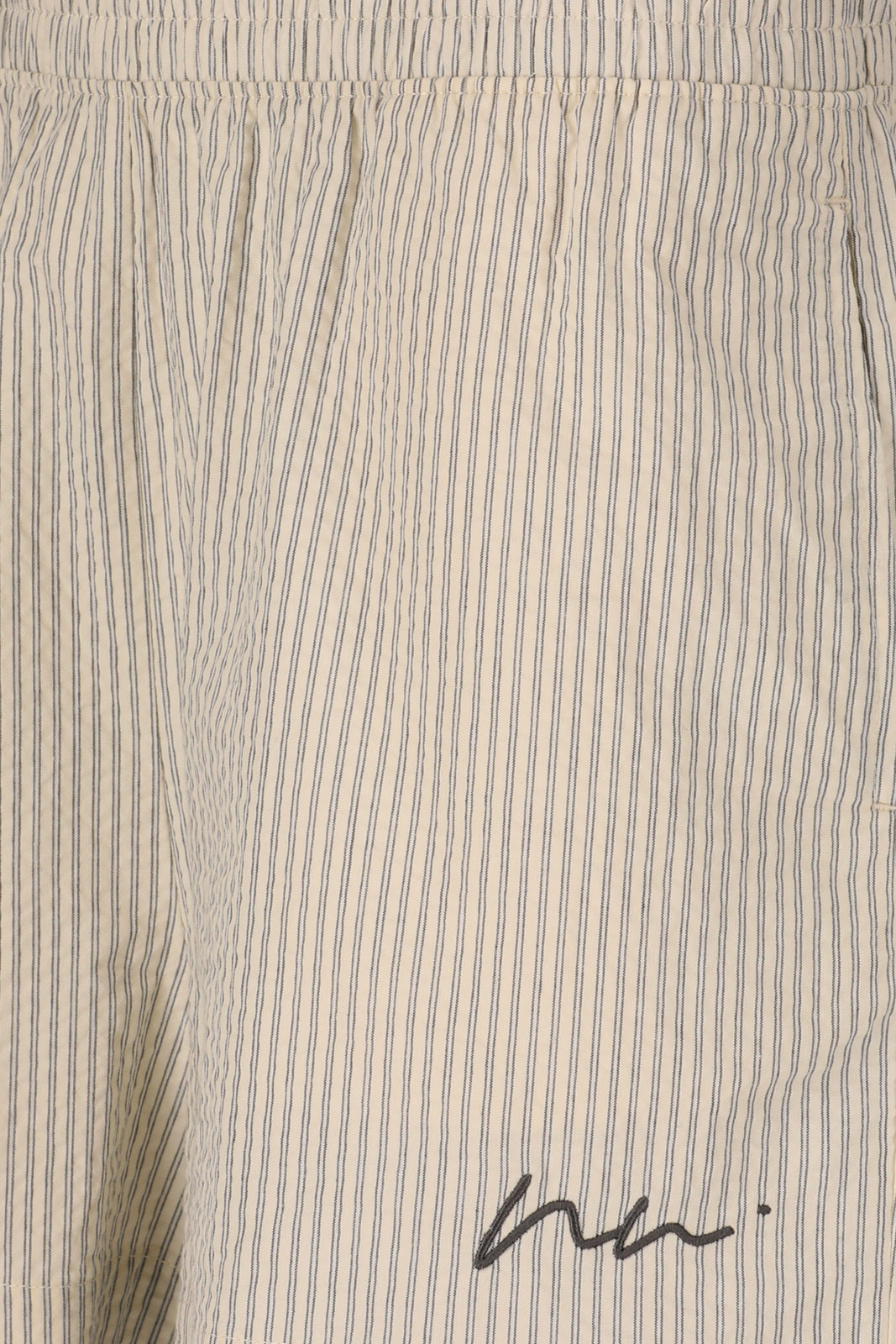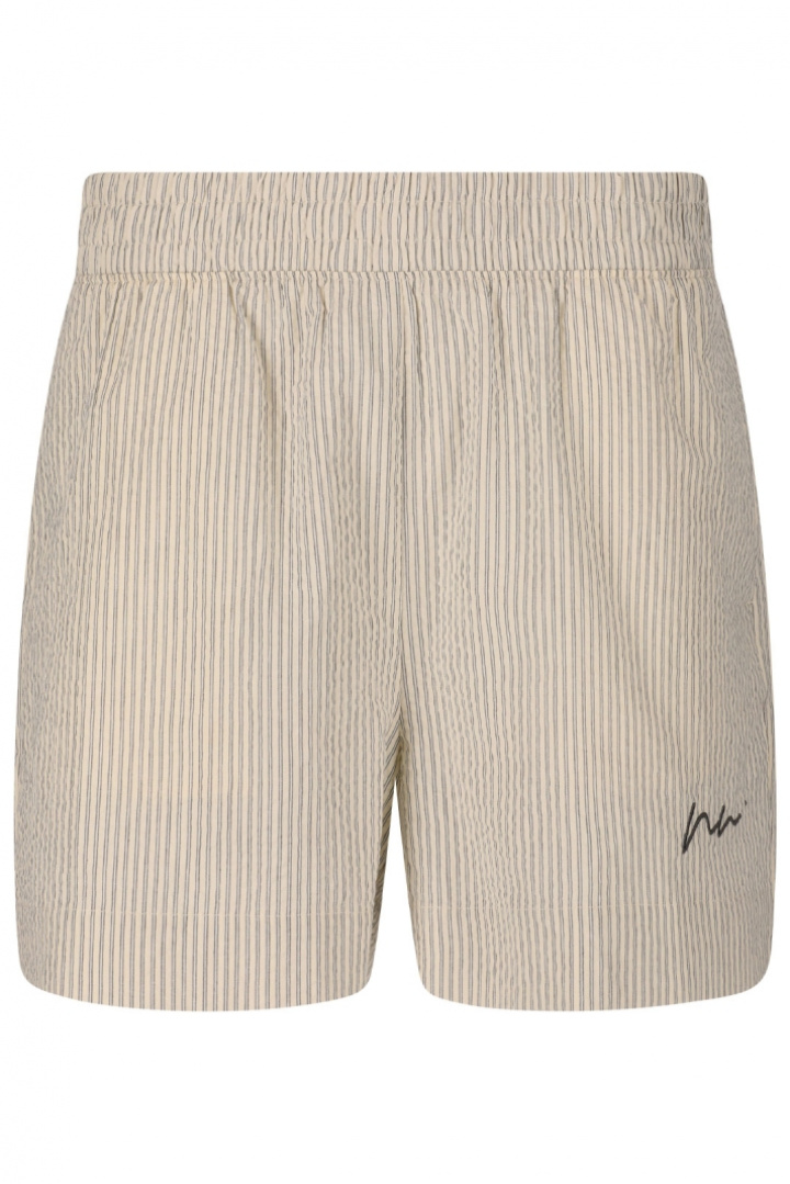 Tillverkade i 100% bomull känns de mjuka mot huden och låter huden andas, vilket gör dem sköna när det blir varmt ute. Den randiga designen ger en klassisk och tidlös estetik som enkelt kan stylas upp eller ner. Praktisk förvaring får du med öppna sidofickor som gör det enkelt att ha småprylar nära till hands utan att kompromissa med stilen. Det diskret broderade logotypen ger en exklusiv detalj som lyfter hela looken utan att överdriva.
