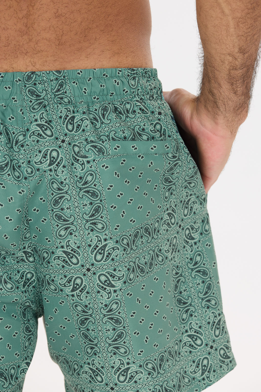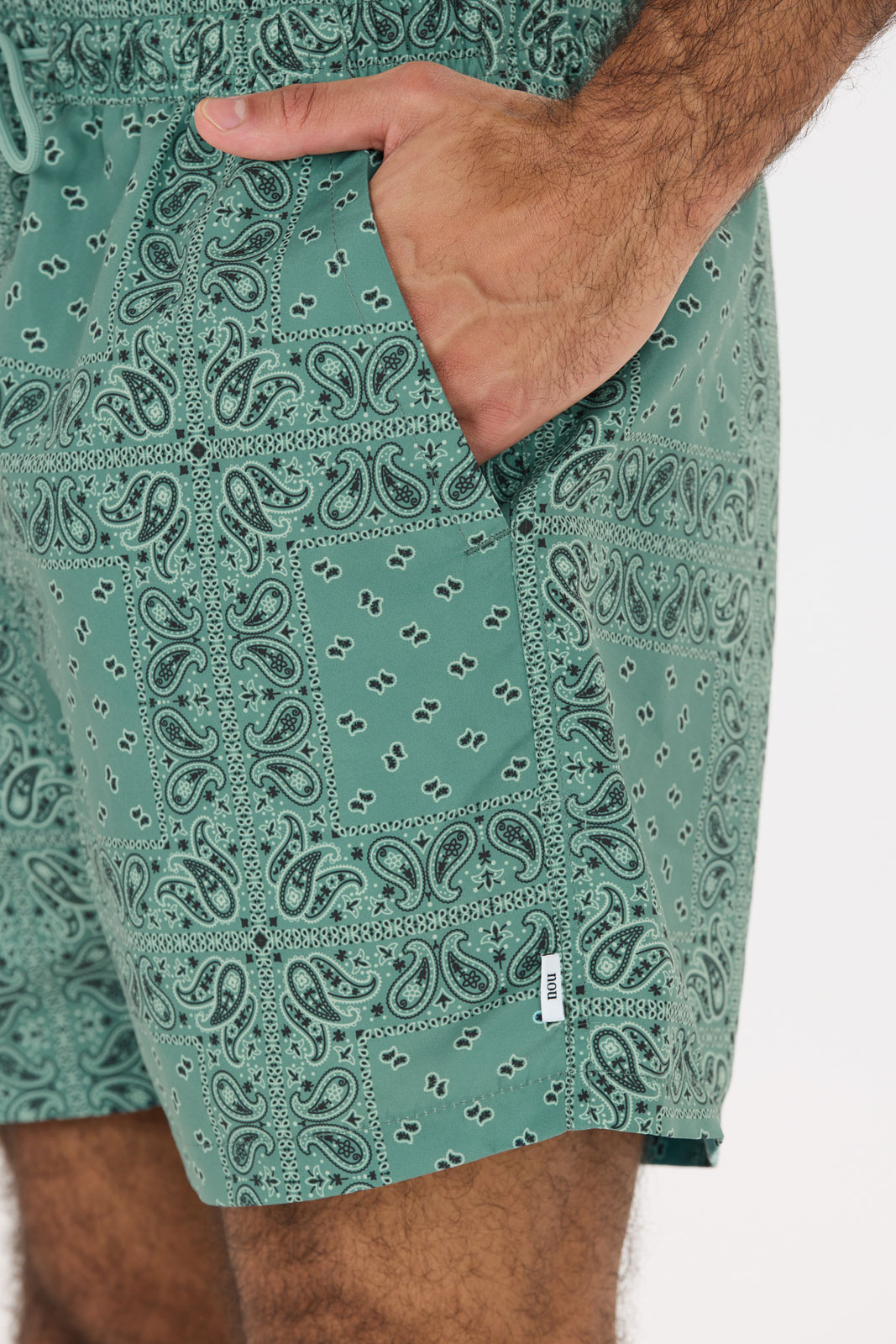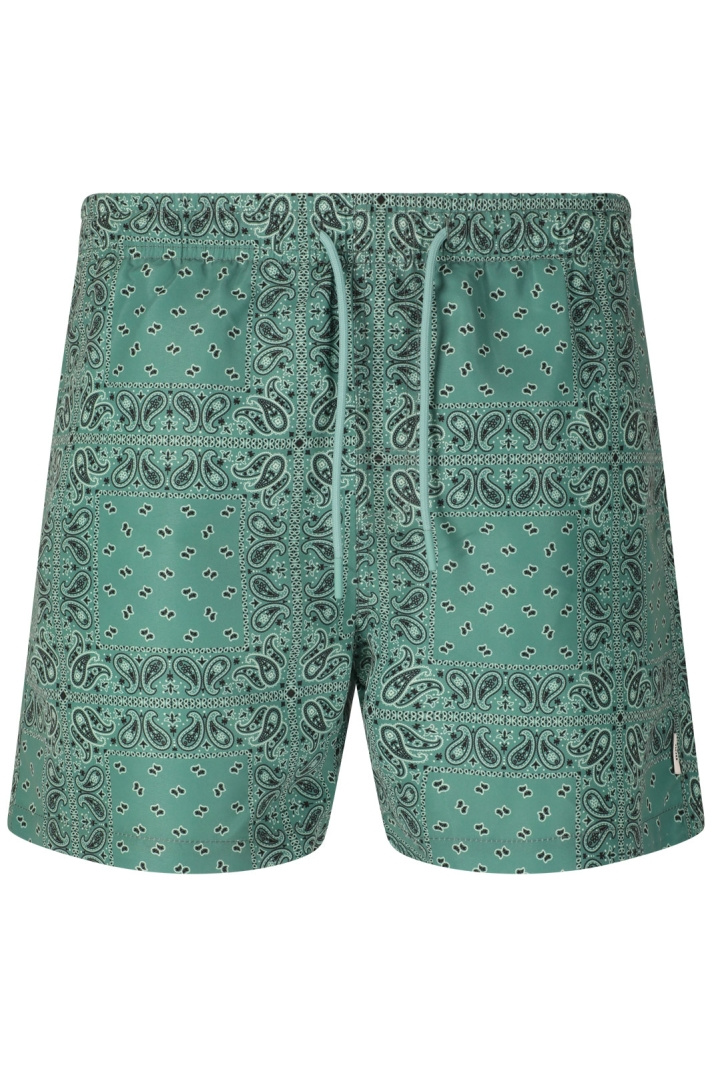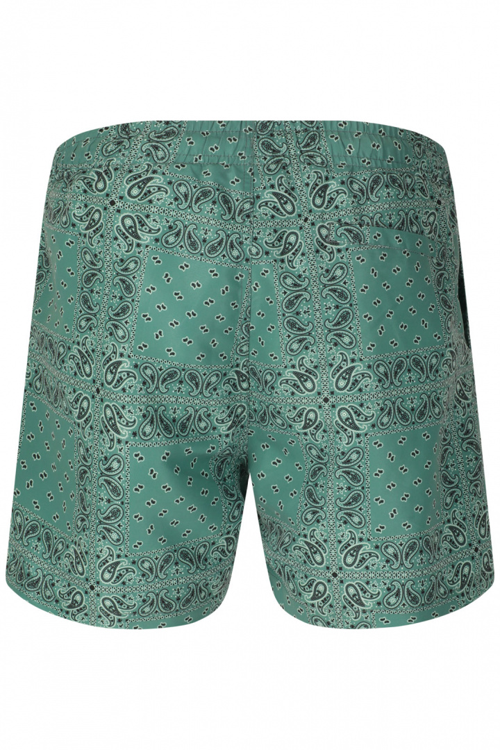 Den unika Paisley-mönstrade designen gör dessa badshorts till ett tydligt statement i din beach- eller poolstil. Shortsen är utformade med en inbyggd mesh-innershorts som ger extra komfort och stöd medan fukt lämnar kroppen snabbt. Materialet är 100% polyester både i yttertyget och i fodret, vilket gör kläderna lätta att sköta, tåliga och snabba att torka efter en dag vid vattnet.