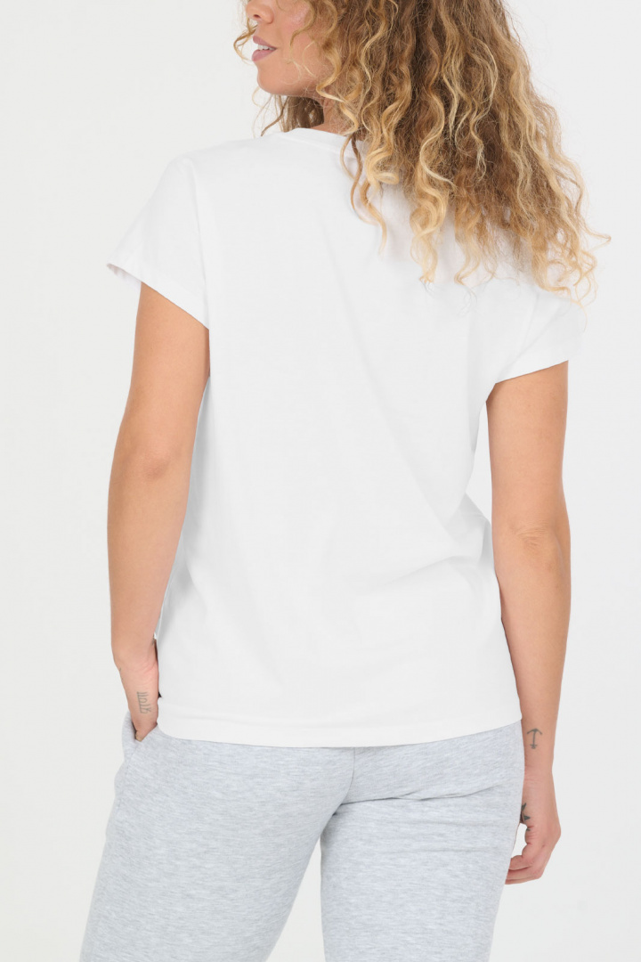 Upptäck Highmore V2 W S/S Tee T-Shirt från Nou- - en tidlös damt-shirt i 100% bomull som passar vardagen lika bra som lediga stunder. Den har rund halsringning och en normal passform (regular fit) som följer kroppen utan att kännas trång, medan den kortärmade designen skapar en enkel och ren silhuett som är lätt att styla. Tillverkad i mjuk bomull ger den naturlig komfort och god andningsförmåga genom dagen, så den känns skön mot huden vid allt från stillasittande arbeten till aktiva fritidsaktiviteter. Denna t-shirt fungerar perfekt som basplagg i garderoben - enkel att kombinera med jeans, en kjol eller en vardaglig look. Välj Highmore V2 W S/S Tee T-Shirt från Nou- när du söker en pålitlig, hållbar och lättvårdad t-shirt i bomull som håller stilen över tid.