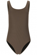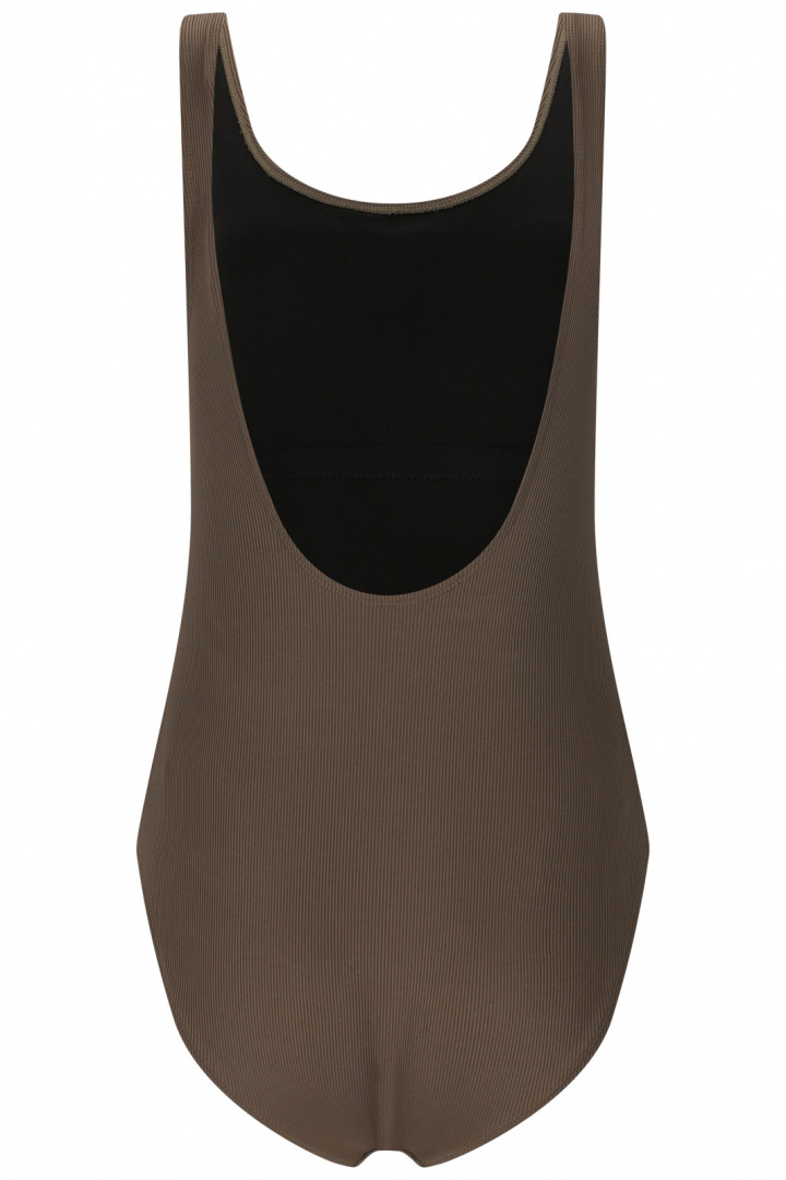 Upptäck Sonam W Swimsuit från Nou - en baddräkt dam med normal passform som förenar stil och funktion för strand och pool. Den rundade halsringen, ribbade ytan och den öppna ryggen skapar en modern, sportig look utan att kompromissa med komforten. De vadderade kuporna är uttagbara så du kan anpassa stödet efter behov, och resåren i midjan tillsammans med den sköna stretch gör att baddräkten sitter säkert och bekvämt genom alla aktiviteter.