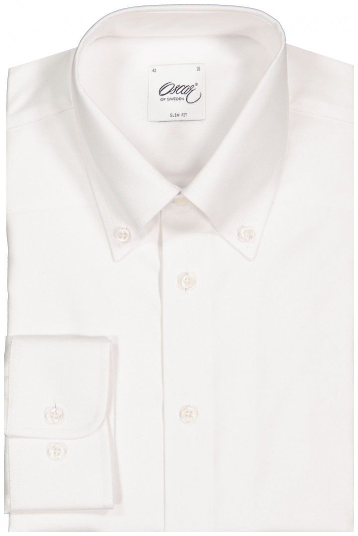 Skjorta från Oscar of Sweden.Oscar Skjorta 1725 Slim.Artikelnummer: 1725-33-SN- Slim fit- Button down krage- Knappknäppning framtill- Rund manschett- Skjorta herrOscar Skjorta 1725 Slim från Oscar Of Sweden är en modern slim fit-skjorta i 100% bomull som kombinerar komfort med en ren och professionell look. Den praktiska button-down-kragen ger en avslappnad men ändå polerad känsla, samtidigt som den smidiga knappknäppningen framtill och de rundade manschetterna ger skjortan en klassisk och tidlös stil. Denna skjorta är tillverkad i mjuk bomull som andas bra och känns behaglig mot huden under hela dagen.Passformen är slim utan att falla på bekostnad av rörelsefrihet, vilket ger en slank silhuett som passar både kontorsmiljö och fritidsuppdrag. Det rena snittet gör den lätt att styla med allt från en blazer och kostymbyxor till ett par jeans eller chinos, vilket gör den till en mångsidig hörnsten i garderoben. Designen med button-down-krage och rundade manschetter ger små, men tydliga detaljer som höjer helheten utan att kännas överdrivna.Denna skjorta är ett bra val för mannen som söker en tidlös men ändå nutida look i ett behagligt och hållbart material. Den enkla, eleganta designen tillsammans med den robusta bomullen gör Oscar Skjorta 1725 Slim till ett säkert val för både arbetsveckor och lediga helger. Upplev den smidiga passformen och den kvalitetskänsla som Oscar Of Sweden står för och gör den till en av dina mest använda skjortor i garderoben.Tack för att du handlar i vår webbshop. Besök oss även i vår butik i Vingåker. Läs mer på www.vfo.se