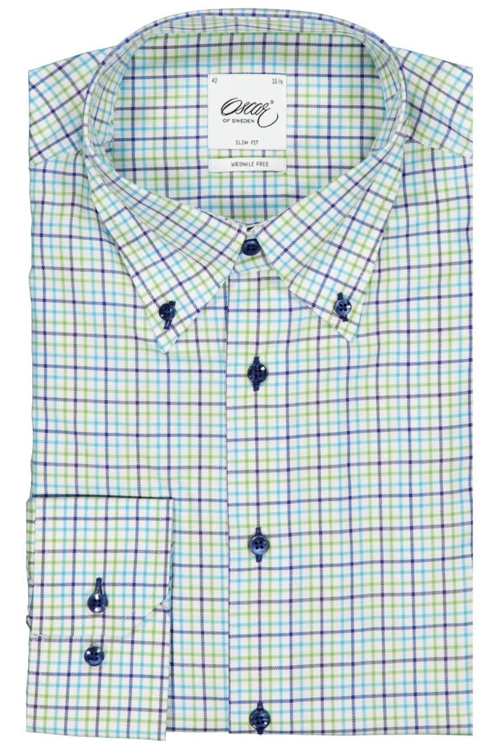 Oscar Skjorta 6522 Slim från Oscar Of Sweden är en slim fit herrskjorta i 100% bomull som kombinerar modern passform med en tidlös rutig design. Den praktiska button-down-kragen ger ett avslappnat men ändå prydligt intryck, och den klassiska knappknäppningen framtill gör det enkelt att klä upp eller ner beroende på tillfälle. Med vinklade manschetter får skjortan en distinkt, samtida finish som skiljer den från vardagsskjortor.