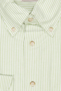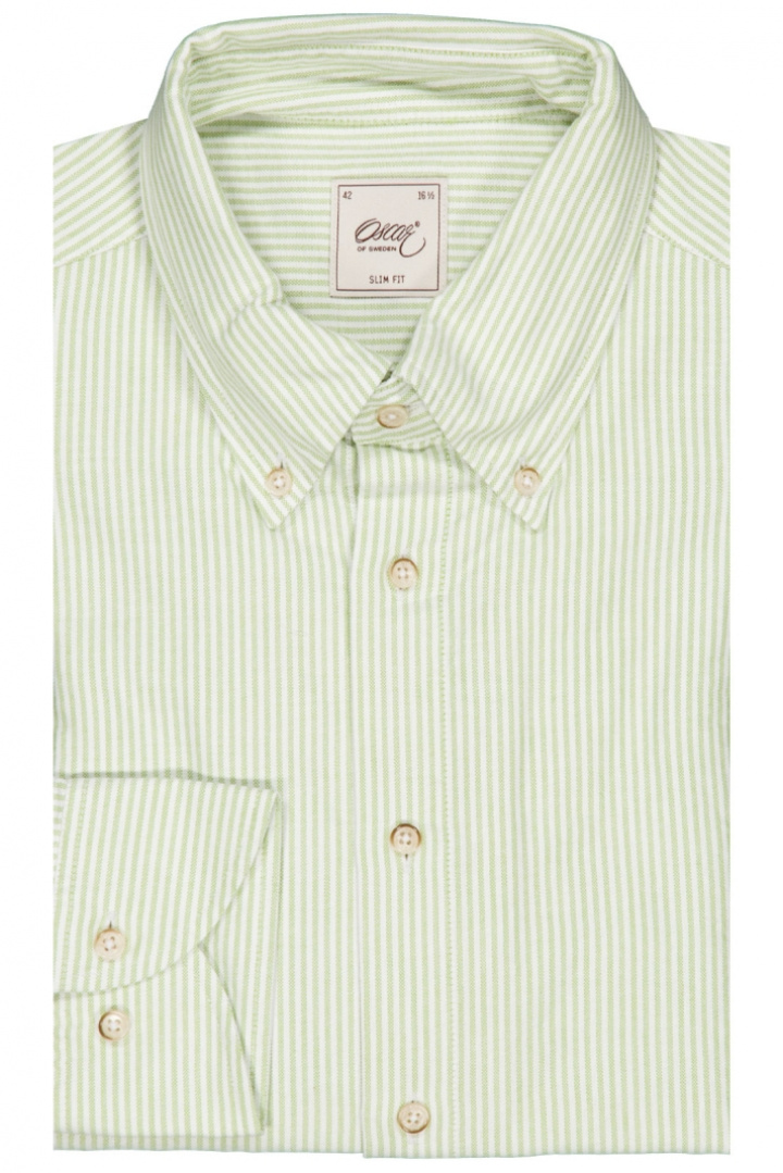Oscar Skjorta 6524 Slim från Oscar Of Sweden är en slim fit herrskjorta som kombinerar en modern silhuett med klassiska detaljer. Den randiga skjortan pryder en spacerad, stilren look tack vare knappknäppningen framtill och den praktiska button-down kragen, som gör den lika enkel att styla upp för kontoret som att bära i mer avslappnade sammanhang. Den rundade manschetten ger en ren linje och bekväm passform runt handlederna, medan den 100% bomullen i skjortan ger mjukhet, bra andningsförmåga och naturlig komfort hela dagen. Med sitt satsade slim cut framhävs kroppen utan att ge avkall på rörelsefrihet, vilket gör denna randiga skjorta till ett konsekvent bra val för den stilmedvetna mannen som vill ha en mångsidig och välskräddad topp i garderoben. Bär den under en blazer för en professionell look eller matcha med jeans för en avslappnad helgstil. Oscar Skjorta 6524 Slim är ett pålitligt val som kombinerar kvalitet och nytta, där de tygvalda detaljerna - button-down krage, randigt mönster, knappknäppning framtill och rund manschett - lyfter helheten utan att överdriva.