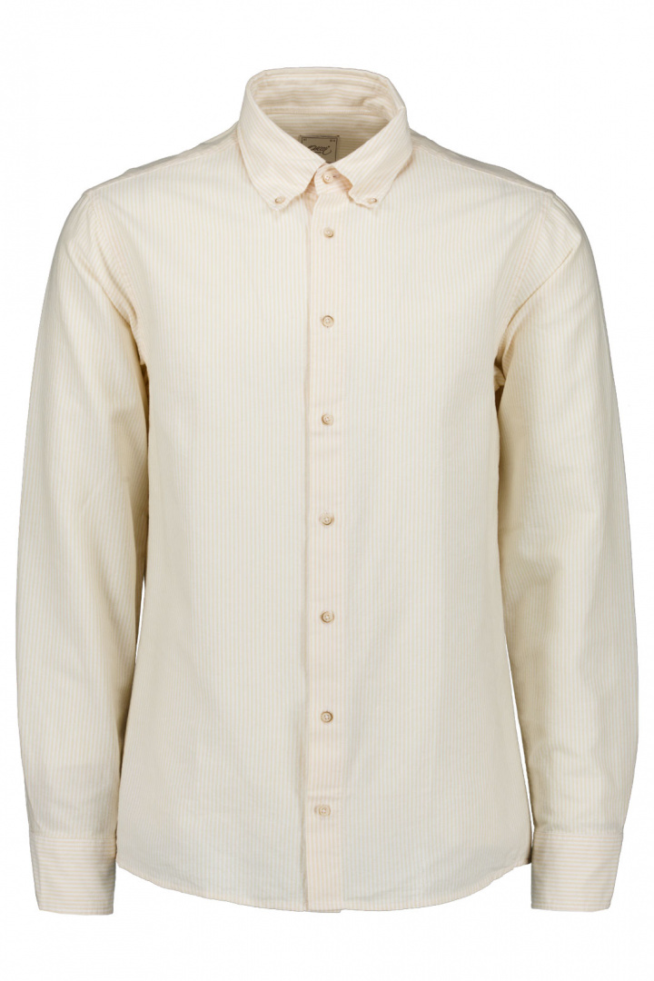 Oscar Skjorta 6524 Slim från Oscar Of Sweden är en slim fit herrskjorta som kombinerar en modern silhuett med klassiska detaljer. Den randiga skjortan pryder en spacerad, stilren look tack vare knappknäppningen framtill och den praktiska button-down kragen, som gör den lika enkel att styla upp för kontoret som att bära i mer avslappnade sammanhang. Den rundade manschetten ger en ren linje och bekväm passform runt handlederna, medan den 100% bomullen i skjortan ger mjukhet, bra andningsförmåga och naturlig komfort hela dagen. Med sitt satsade slim cut framhävs kroppen utan att ge avkall på rörelsefrihet, vilket gör denna randiga skjorta till ett konsekvent bra val för den stilmedvetna mannen som vill ha en mångsidig och välskräddad topp i garderoben. Bär den under en blazer för en professionell look eller matcha med jeans för en avslappnad helgstil. Oscar Skjorta 6524 Slim är ett pålitligt val som kombinerar kvalitet och nytta, där de tygvalda detaljerna - button-down krage, randigt mönster, knappknäppning framtill och rund manschett - lyfter helheten utan att överdriva.