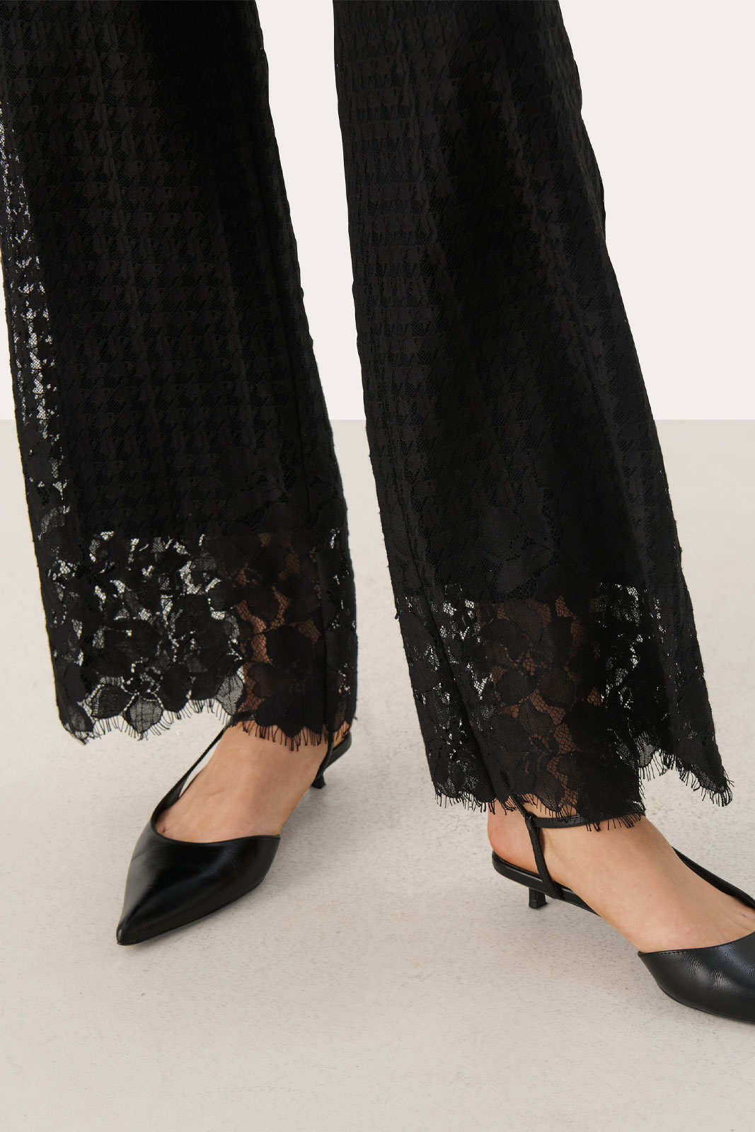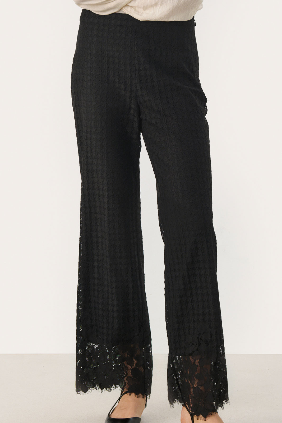 Spetsbyxor från Part Two.Deviapw Pa.Artikelnummer: 30309152- Normal midja- Raka ben- Dragkedja i sidan- Spets- Byxor damDeviapw Pa Byxa från Part Two - Elegans och Komfort för Den Moderna KvinnanUpptäck den perfekta kombinationen av stil och komfort med Deviapw Pa Byxa från Part Two. Dessa byxor är designade för kvinnor som värdesätter både mode och funktionalitet. Med en normal midja och raka ben erbjuder dessa byxor en klassisk och tidlös silhuett som smickrar alla kroppstyper. Den unika dragkedjan i sidan ger en subtil, men elegant touch som gör dem lätta att ta av och på. Det fina spetsdetaljen bidrar till en feminin känsla, vilket gör dem till ett utmärkt val för både kontoret och mer avslappnade tillställningar.Dessa byxor är tillverkade av en noga utvald blandning av 64% bomull och 36% polyamid, vilket ger en mjuk och behaglig känsla mot huden. Fodret inuti består av 92% polyester och 8% elastan för att ge extra komfort och rörelsefrihet. Med detta materialval är du garanterad hållbarhet och lättskötthet.Deviapw Pa Byxa är mer än bara ett par byxor; det är ett stilfullt val för den moderna kvinnan. Dess mångsidighet gör att de kan kombineras med allt från en enkel t-shirt till en elegant blus. Oavsett tillfälle kommer dessa byxor att ge dig en självsäker look som samtidigt känns bekväm och avslappnad.Ge din garderob en uppgradering med Deviapw Pa Byxa från Part Two - en investering i både stil och komfort som du kommer att uppskatta säsong efter säsong. Perfect för den trendiga damen som vill sticka ut med subtil stil!Tack för att du handlar i vår webbshop. Besök oss även i vår butik i Vingåker. Läs mer på www.vfo.se