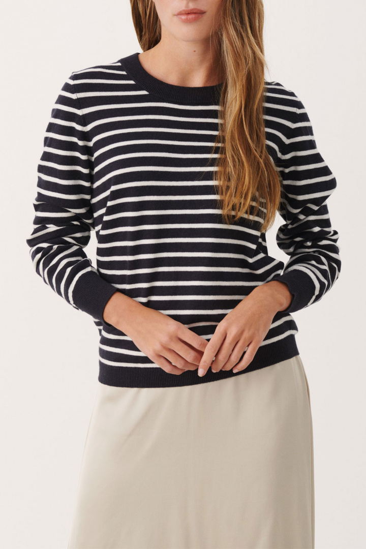 Stickad tröja från Part Two.Gertiepw Pu.Artikelnummer: 30305781- Normal passform- Rund halsringning- Ribbad mudd i krage, ärmslut och nedtill- Finstickad - Randig- Stickad tröja damTack för att du handlar i vår webbshop. Besök oss även i vår butik i Vingåker. Läs mer på www.vfo.se
