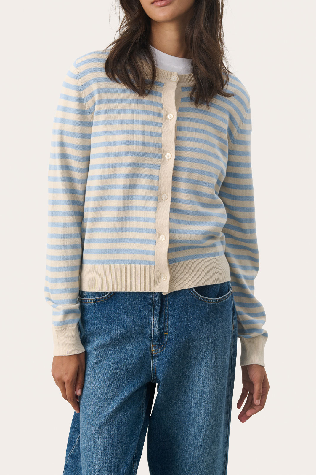 Kofta från Part Two.Tanishapw Ca.Artikelnummer: 30308325- Normal passform- Rund halsringning- Knappknäppning framtill- Stickad- Ribbad mudd i krage, ärmslut och nedtill- Randig- Kofta damTanishapw Ca Tröja från Part Two - En tidlös klassiker för damUpptäck den eleganta och mångsidiga Tanishapw Ca Tröjan från Part Two, som kombinerar stil och komfort på bästa sätt. Denna stickade kofta har en normal passform som passar perfekt för alla kroppstyper, vilket gör den till ett utmärkt val för varje garderob.Koftan har en rund halsringning och en praktisk knappknäppning framtill, vilket gör den enkel att ta på och av. Ribbad mudd i krage, ärmslut och nedtill ger ett sofistikerat utseende och bidrar dessutom till en perfekt passform. Med sin tidlösa design är Tanishapw Ca Tröjan en perfekt layering-piece som enkelt kan kombineras med både byxor och klänningar, vilket gör den idealisk för både arbete och fritid.Tillverkad av 100% bomull är denna tröja inte bara mjuk och behaglig mot huden, utan också lätt att sköta. Bomull är ett andningsbart material som gör att du kan känna dig fräsch hela dagen, oavsett aktivitet. Den hållbara och kvalitativa konstruktionen gör att denna kofta kommer att bli en trogen följeslagare säsong efter säsong.Välj Tanishapw Ca Tröjan från Part Two för en kombination av stil, komfort och hållbarhet. Den är perfekt för den moderna damen som värdesätter både fashion och funktionalitet. Lägg till ett extra lager av värme utan att kompromissa med din stil. Denna kofta är inte bara ett plagg, utan en investering i din garderob.Gör Tanishapw Ca Tröjan till en del av din stiliga samling idag och upplev skillnaden i kvalitet och design!Tack för att du handlar i vår webbshop. Besök oss även i vår butik i Vingåker. Läs mer på www.vfo.se