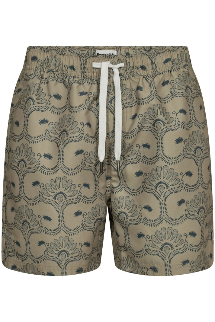 Willy Swim Shorts har en normal midja och raka ben, vilket ger en bekväm och avslappnad silhuett som sitter bra både på stranden och vid poolen. Med resår och snörning i midjan kan du justera passformen för att få den mest bekväma känslan. Det genomtänkta mönstret ger shortsna en stilren look, så att du alltid känner dig självsäker och snygg.