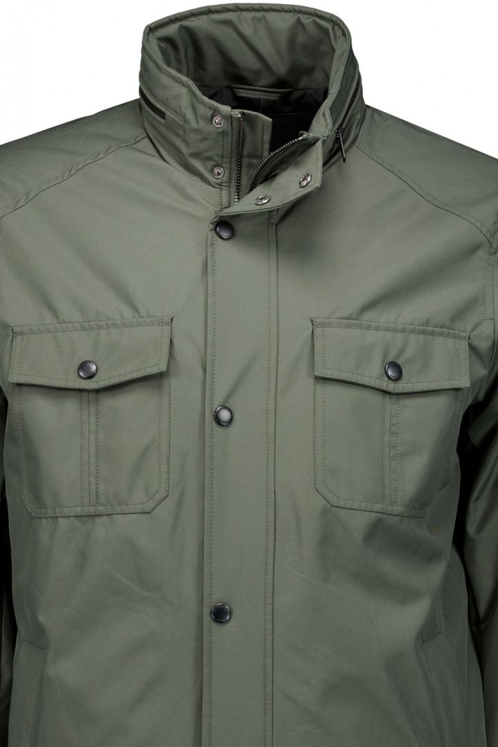Leo Tech Jacket från Rock N Blue är en herrjacka i normal passform som förenar urban stil med praktisk funktion. Den dolda dragkedjan framtill ger en clean och strömlinjeformad profil samtidigt som den skyddar mot vind - perfekta detaljer när vädret växlar. Den vinklade manschetten ger en samtida finish och ökar komforten vid rörelse. Förvaringen är genomtänkt: två nedre fickor med tryckknapp samt två bröstfickor med lock och knapp gör det enkelt att nå mobilen, nycklarna eller småprylar utan att det syns på utsidan.