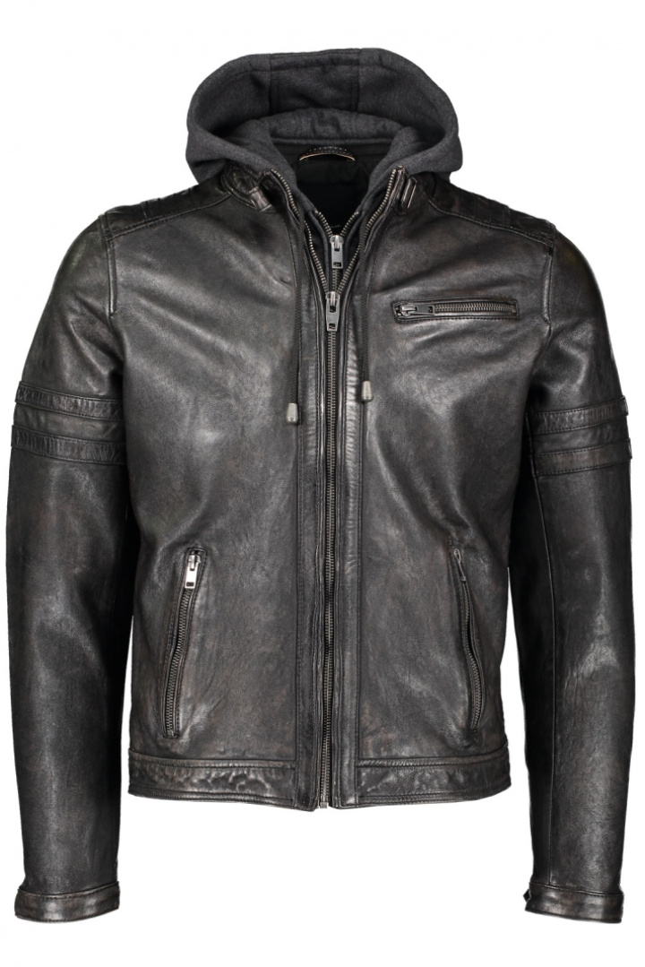 Skinnjacka från Rock n blue.Ringo Jacket.Artikelnummer: 23059-2790- Normal passform- Avtagbar luva med dragsko- Dragkedja framtill- Två fickor med dragkedja- En bröstficka med dragkedja- Dragkedja i ärmslut- Skinnjacka herrRingo Jacket ? eleganta skinnjackan för HerrenUpptäck Ringo Jacket från Rock N Blue, en stilren och praktisk skinnjacka som kombinerar klassisk design med moderna funktioner. Denna jacka är ett utmärkt val för den stilmedvetna mannen som vill ha både komfort och stil.Ringo Jacket har en normal passform som passar många kroppstyper, vilket gör den till en mångsidig favorit i garderoben. Den avtagbara luven med dragsko ger dig möjlighet att anpassa jackan efter väder och humör. Den eleganta dragkedjan framtill ger en snygg finish som är både funktionell och stilren.Med flera praktiska fickor ? två med dragkedja i sidorna och en säker bröstficka ? är Ringo Jacket perfekt för att förvara dina nödvändigheter. Dragkedjan i ärmsluten tillåter justeringar för den perfekta passformen och ökar både stilen och komforten i vardagen.Tillverkad av 100% fårläder ger denna jacka en mjuk och lyxig känsla, samtidigt som det erbjuder slitstyrka och långvarig hållbarhet. Inuti är jackan fodrad med polyester, vilket bidrar till extra komfort och en skön känsla mot huden.Ringo Jacket är mer än bara en jacka ? det är en investering i tidlös stil och funktionalitet. Den perfekta kombinationen av snygg design och praktiska detaljer gör den idealisk för både vardag och helg. Du förtjänar en jacka som får dig att känna dig självsäker och bekväm i alla situationer.Följ trenden och sätt en ny standard för din yttre stil med Ringo Jacket från Rock N Blue. Gör detta kvalitetssplagg till en del av din garderob idag!Tack för att du handlar i vår webbshop. Besök oss även i vår butik i Vingåker. Läs mer på www.vfo.se