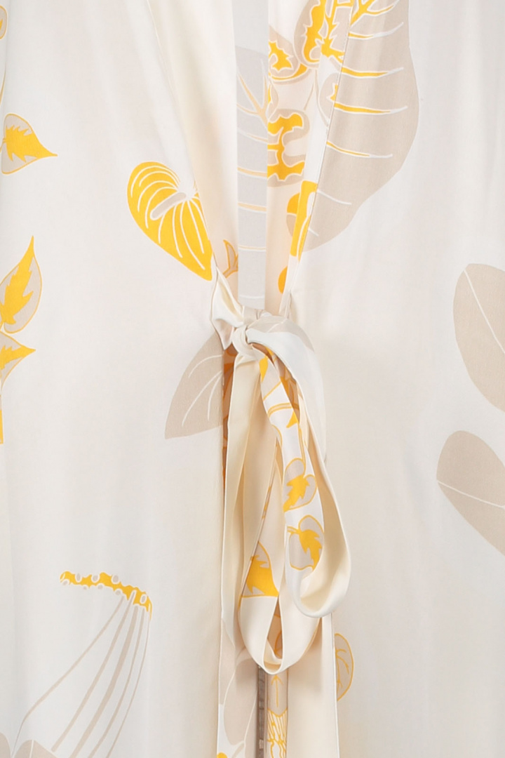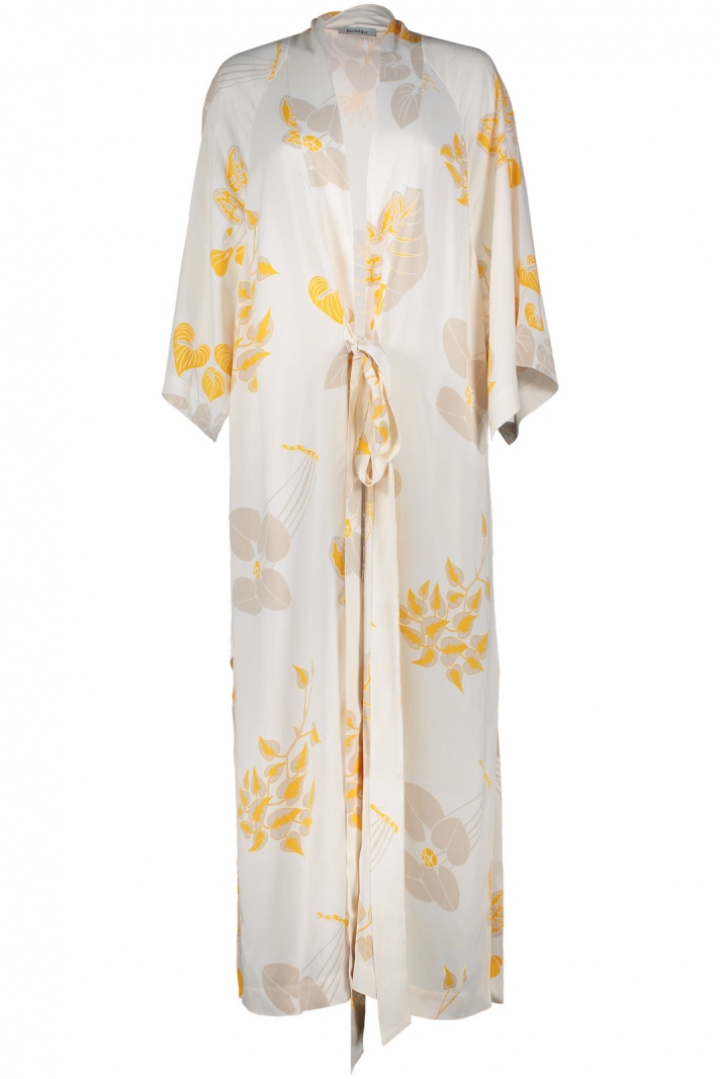 Kimono från Rodebjer.Rodebjer Mabelin Cape Leaf.Artikelnummer: 2200858- Normal passform- Knytning i midjan- Öppna sidofickor- Slits i sidorna- Går även att knyta omlott och använda som klänning- Mönstrad- Kimono damRodebjer Mabelin Cape Leaf - En elegant kimono för den moderna kvinnanUpptäck vår stiliga Rodebjer Mabelin Cape Leaf, designad för att lyfta din garderob med en touch av elegans och komfort. Denna kimono har en normal passform som smickrar figuren och erbjuder en avslappnad men sofistikerad look, perfekt för både vardag och fest.Mabelin Cape Leaf är vackert mönstrad med en unik kimono-inspirerad design. Detaljer som knytningen i midjan ger möjlighet till individuell justering och framhäver din silhuett på bästa sätt. De öppna sidofickorna erbjuder både funktion och stil, så att du kan bära med dig det du behöver utan att kompromissa med utseendet. Kimono har dessutom slitsar i sidorna, vilket ger en chic look och ökad rörelsefrihet.Tillverkad av 100% viskos, är denna kimono både lätt och luftigt, vilket gör den perfekt för varma dagar eller som en lager över en t-shirt under kyligare kvällar. Viskosmaterialet ger en skön känsla mot huden och en vacker fall som formar sig elegant runt kroppen.Rodebjer Mabelin Cape Leaf är det perfekta valet för den moderna kvinnan som söker stil, komfort och funktionalitet i sin klädesgarderob. Med dess unika design och genomtänkta detaljer är denna kimono ett mångsidigt plagg som kan kläs upp eller ner beroende på tillfälle. Kombinera med sandaler för en avslappnad look eller med klackar för en mer festlig stil.Gör ett smart val och låt Rodebjer Mabelin Cape Leaf bli ett självklart inslag i din stil. Sätt igång och förhöj din modeupplevelse idag!Tack för att du handlar i vår webbshop. Besök oss även i vår butik i Vingåker. Läs mer på www.vfo.se