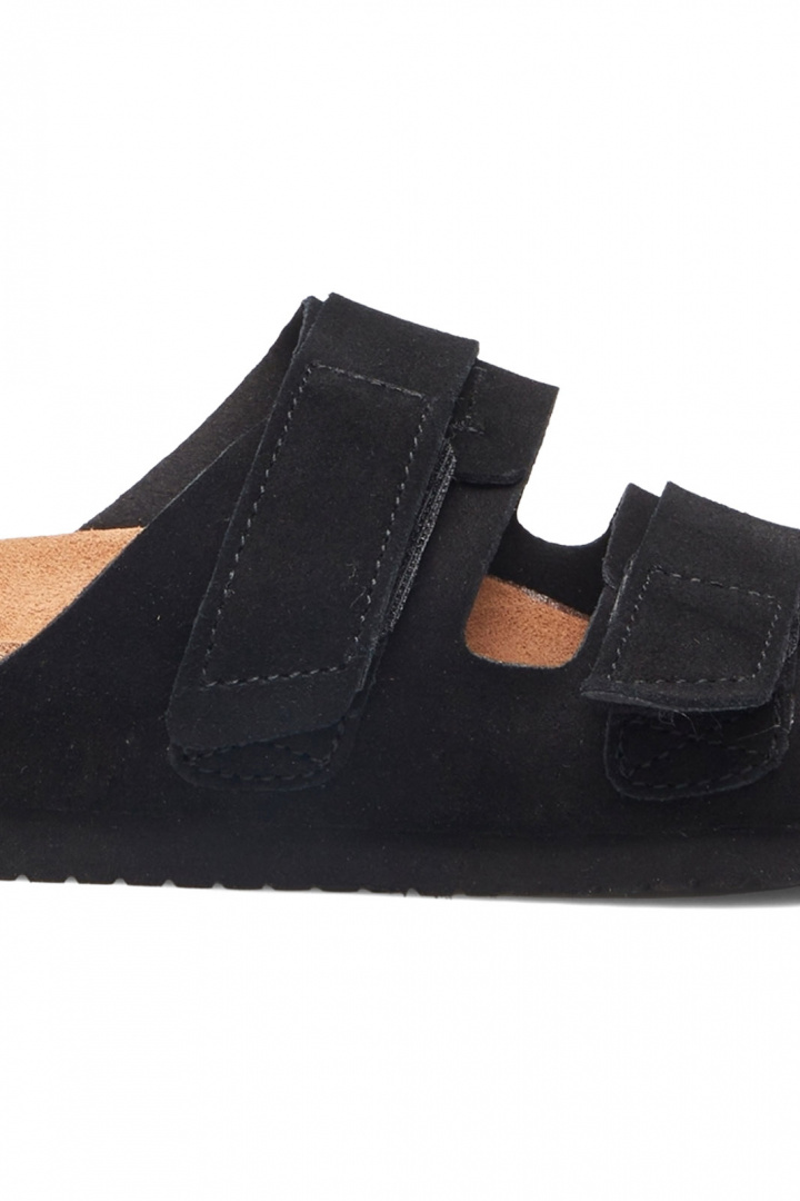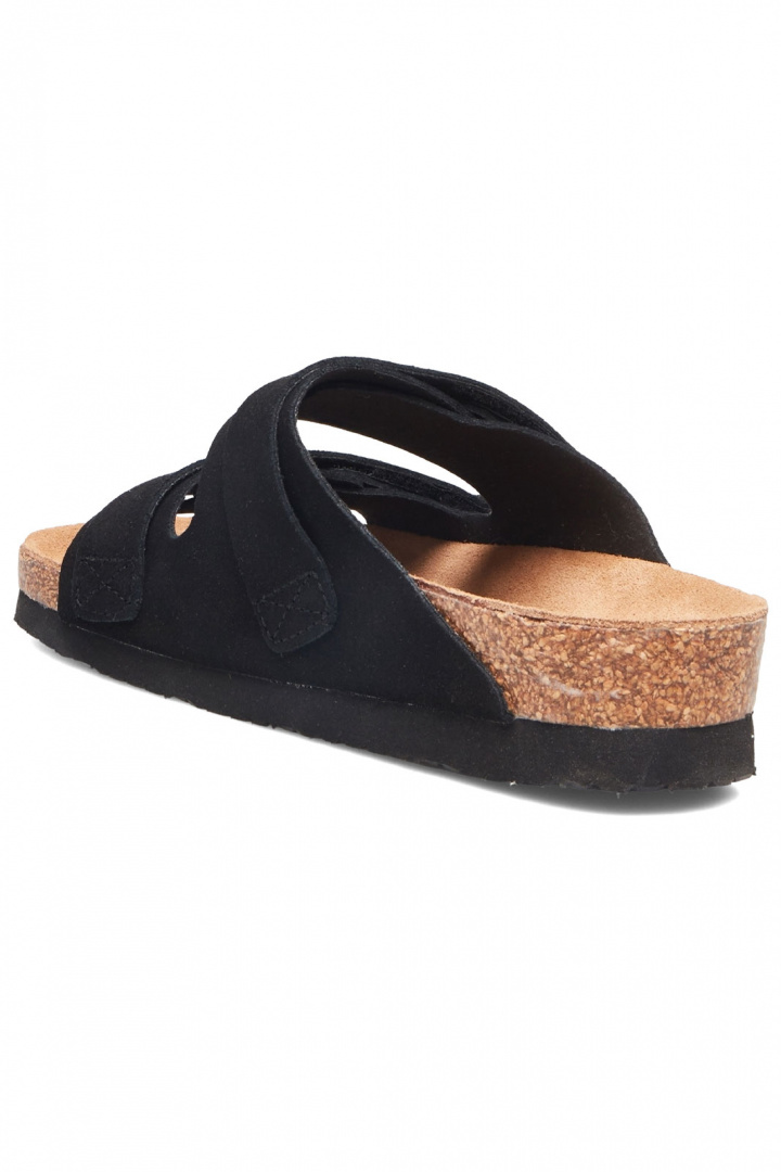Material och konstruktion går hand i hand med komforten. Utsidan består av läder i suede-ägning, vilket ger en sotad, varm nyans och ett naturligt, snyggt uttryck. Insidan kombinerar textil och läder för en behaglig känsla mot foten och god andningsförmåga under längre dagar. Yttersulan är i gummi, vilket ger bra grepp och hållbarhet oavsett om du går i stan eller längs strandpromenaden. Den praktiska kardborre spännet gör det enkelt att justera passformen för en säker och bekväm känsla varje gång du tar på dig skorna.