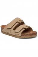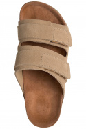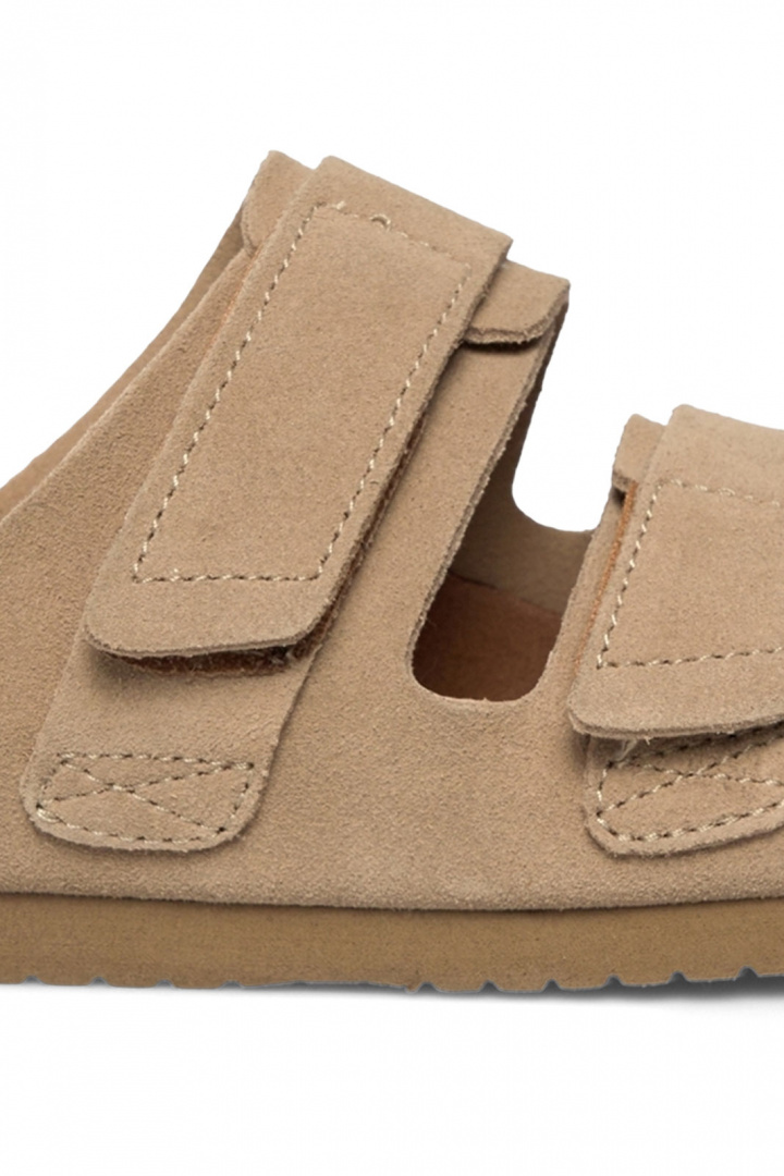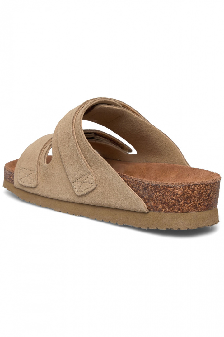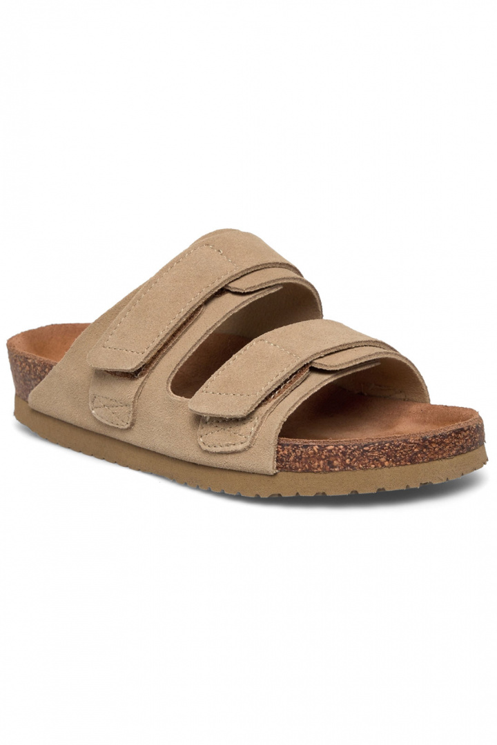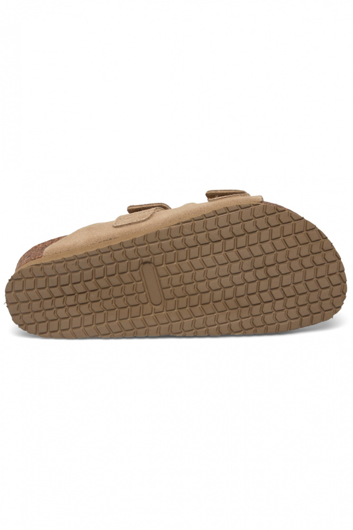 Material och konstruktion går hand i hand med komforten. Utsidan består av läder i suede-ägning, vilket ger en sotad, varm nyans och ett naturligt, snyggt uttryck. Insidan kombinerar textil och läder för en behaglig känsla mot foten och god andningsförmåga under längre dagar. Yttersulan är i gummi, vilket ger bra grepp och hållbarhet oavsett om du går i stan eller längs strandpromenaden. Den praktiska kardborre spännet gör det enkelt att justera passformen för en säker och bekväm känsla varje gång du tar på dig skorna.