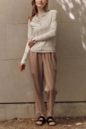 Tillverkad i en mjuk och följsam väv bestående av 65% viskos och 35% polyester. Den här materialblandningen ger utmärkt drapering, en behaglig känsla mot huden och god hållbarhet, vilket gör byxorna bekväma att bära längre stunder och enkla att sköta i vardagen. Den neutrala färgpaletten och den tidløsa designen gör Rmwtalia Mw Trousers till ett mångsidigt val som enkelt kan stylas med en stickad tröja eller en enkel T-shirt och dina favoritskor för olika tillfällen. Med sina praktiska detaljer och kvalitetsfokus står dessa byxor som ett klokt köp för den som söker en långvarig, flexibel plagg i garderoben.