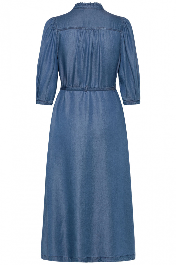 Tillverkad i 100 % Lyocell ger klänningen en mjuk, skön känsla mot huden, utmärkt drapering och god andningsförmåga - perfekt för olika väder och tillfällen. Lyocell kännetecknas av komfort och slitstyrka, och produktionen leds ofta i ett slutet system som speglar ett mer hållbart val, vilket gör den här midiklänningen till ett klokt köp för den medvetna garderoben. Denna Rosemunde-klänning är enkel att matcha med allt från sneakers till klackar och kan bäras både till vardags och mer uppklädda tillfällen.