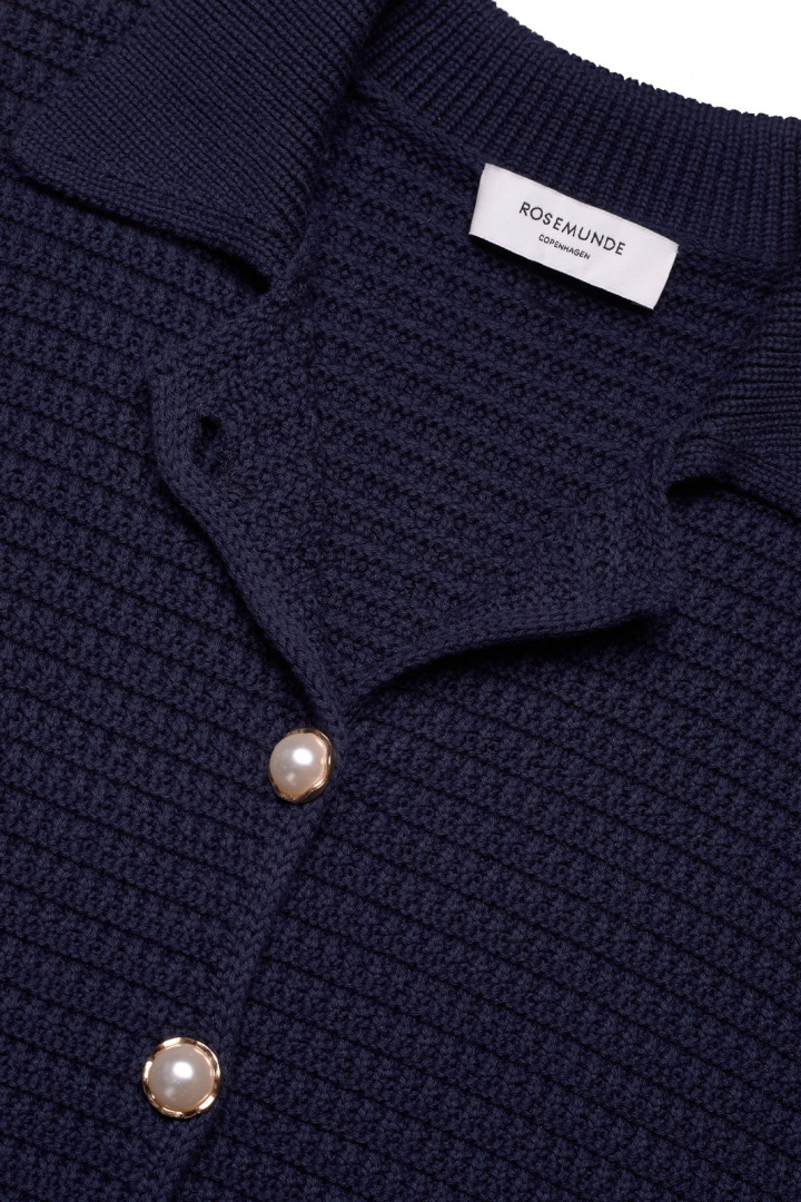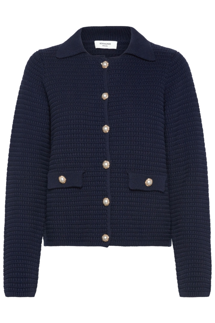 Upptäck den tidlösa elegansen hos Rosemundes Rwemilie Ls Knit Jacket Tröja, en stickad kofta för dam i normal passform som passar lika bra till vardags som till mer uppklädda looks. Den klassiska kragen ger en sofistikerad silhuett medan den framknäppbara fronten med fina pärlknappar ger en feminin detalj utan att överdriva. Dekorationsfickor framtill tillför struktur och karaktär, vilket gör koftan mångsidig nog att bäras över plagg i olika färger och stilar.