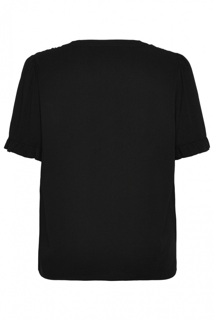 Rwraya Ss Blouse från Rosemunde är en damblus i normal passform som utstrålar enkel elegance och komfort. Den rund halsringningen med V-formad detalj ger en mjuk, feminin inramning av ansiktet, medan volangerna längs ärmarna tillför lekfull rörelse och romantik utan att överdriva. Strukturen i tyget ger liv och djup åt den rena silhuetten, så varje kombination bär ett exklusivt, polerat intryck. Tillverkad i 100% viscose känns blusen mjuk mot huden, har god andningsförmåga och faller snyggt över kroppen. Denna blus är lika mångsidig som den är tidlös och fungerar lika bra till vardags som till mer dressade tillfällen: matcha med ett par jeans för en avslappnad stil eller med en kjol för en elegant kontorslook. Den neutrala, kvalitativa designen gör den till ett säkert köp för garderoben - ett Rosemunde-val som passar de flesta kroppstyper tack vare den bekväma passformen och de unika detaljerna som lyfter varje outfit utan att kännas överdriven.