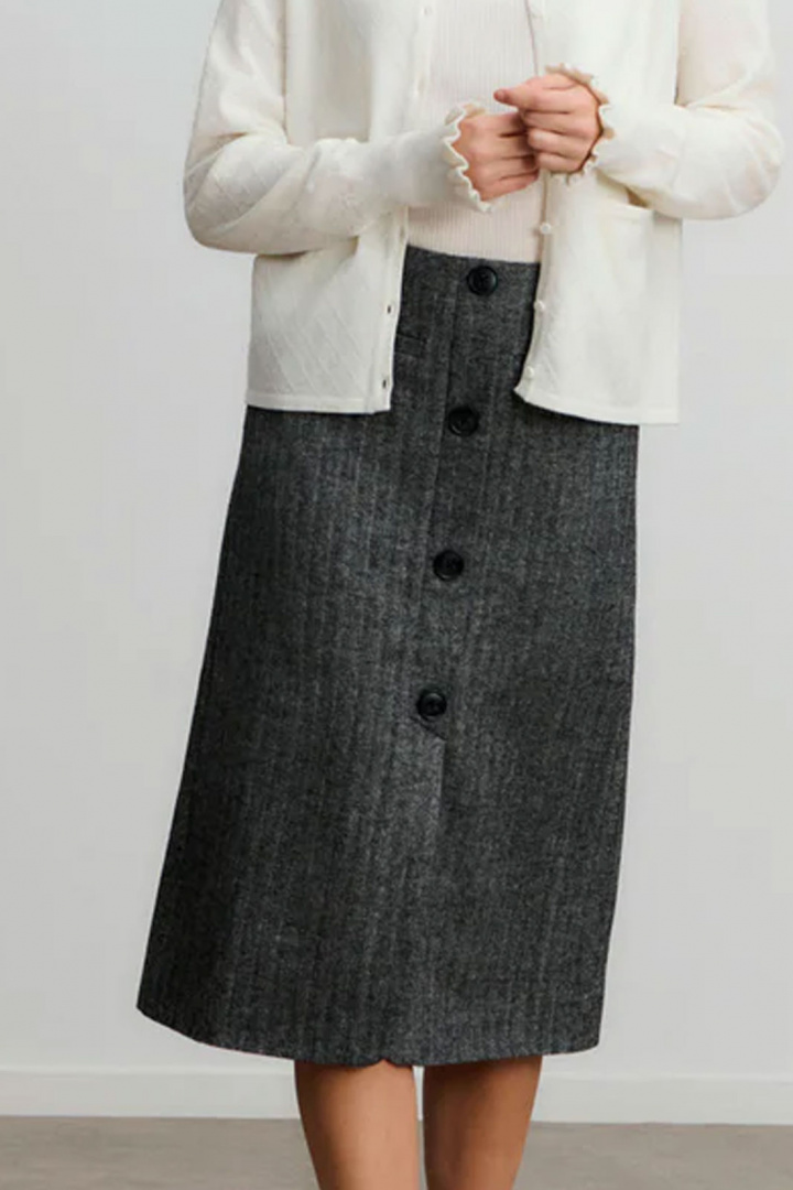 Kjol från Rosemunde.Rwsophia Mw Long Skirt.Artikelnummer: 1010921- Normal midja- Rak passform- Dragkedja baktill- Imitationsknäppning framtill- Imitationsfickor framtill- Kjol damRwsophia Mw Long Skirt - Elegance och Komfort för DamUpptäck fördelarna med Rwsophia Mw Long Skirt från Rosemunde, en kjol som elegant förenar stil och komfort. Denna kjol är designad för den moderna kvinnan som söker en tidlös och mångsidig look.Rwsophia Mw Long Skirt har en normal midja och en rak passform som smickrar din silhuett. Den långa längden ger en sofistikerad känsla, perfekt för både vardagliga och mer formella tillfällen. En diskret dragkedja baktill gör den enkel att ta på och av, medan imitationsknäppningen och imitationsfickorna framtill ger en trendig detalj som förhöjer den övergripande designen.Tillverkad av 70% polyester och 30% ull, erbjuder denna kjol en behaglig känsla mot huden och god hållbarhet. Polyester ger kjolen en lätt skötsel och en fin lyster, medan ullen tillför värme och komfort.Denna kjol är det perfekta valet för kvinnan som värdesätter både stil och komfort. Med sin eleganta design och högkvalitativa material är den lätt att styla med både blusar och tröjor, vilket gör den till en mångsidig del av din garderob. Oavsett om du ska på jobbet, en middag eller en weekendutflikt, kommer Rwsophia Mw Long Skirt att ge dig det självförtroende och den stil du söker.Gör ett smart val för din klädgarderob och investera i Rwsophia Mw Long Skirt - en kjol som kombinerar mode med funktionalitet. Beställ din idag och upptäck hur enkelt det är att skapa en chic och sofistikerad look!Tack för att du handlar i vår webbshop. Besök oss även i vår butik i Vingåker. Läs mer på www.vfo.se