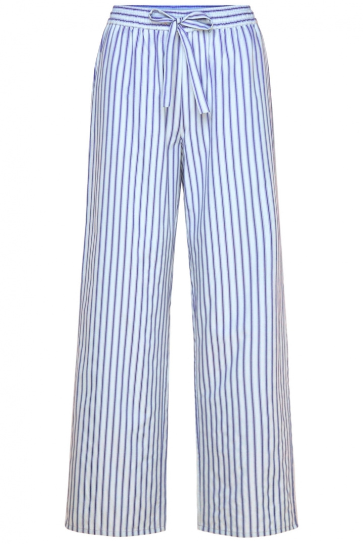 Upptäck Rwulla Mw Trousers från Rosemunde - en dambyxa med normal midja som kombinerar komfort och stil på ett naturligt sätt. Denna modell har resår och snörning i midjan för en flexibel passform som du enkelt kan anpassa efter dagens aktiviteter. De raka benen skapar en tidlös silhuett som känns lika snygg i vardagen som vid avslappnade helgaktiviteter. Praktiska öppna sidofickor gör att du alltid har småsaker nära till hands utan att kompromissa med den rena designen. Den randiga ytan ger en fräsch och modern känsla som passar lika bra till t-shirt som till en mjuk blus eller en bomullströja.