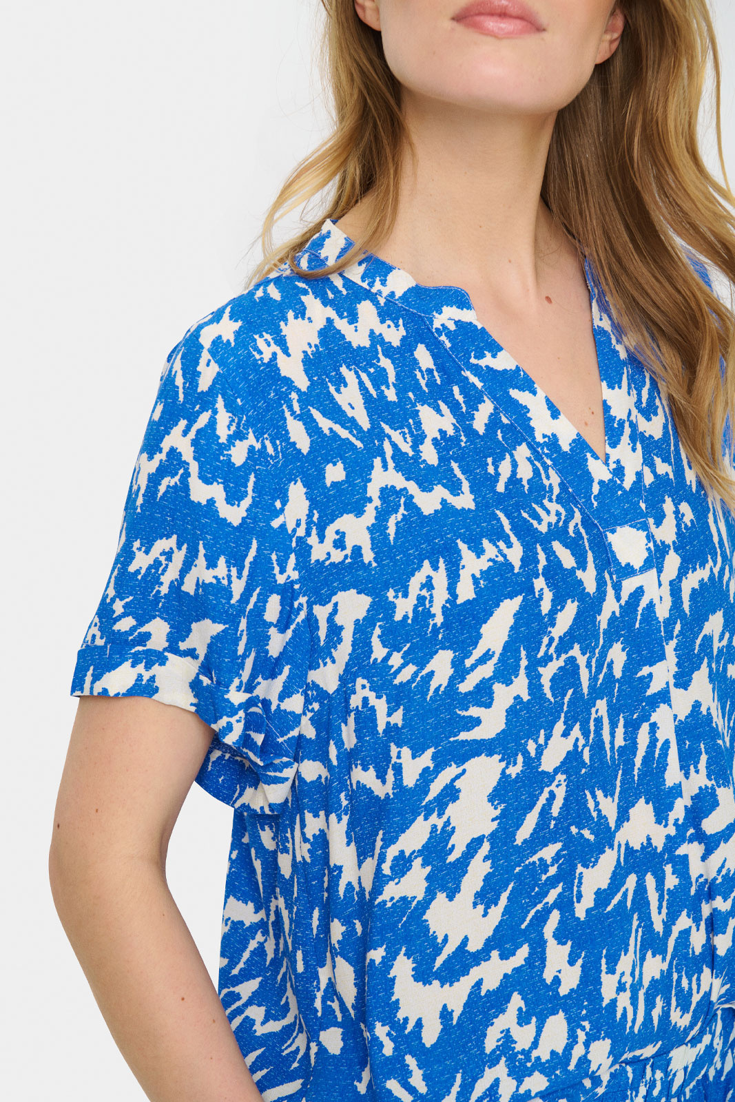 Blus från Saint Tropez.Agnessz Ss Top.Artikelnummer: 30510258- Normal passform- V-ringad- Uppvikta ärmslut- Mönstrad- Blus damAgnessz SS Top - Elegant Topp för dam från Saint TropezUppgradera din garderob med Agnessz SS Top från Saint Tropez, en stilren och trendig blus som passar perfekt för alla tillfällen. Med sin normala passform och v-ringning erbjuder denna topp både komfort och stil, vilket gör den till ett måste i varje kvinnas klädkollektion.Toppens uppvikta ärmslut ger en avslappnad och chic känsla som är idealisk för både vardag och fest. Det subtila mönstret tillför en extra dimension av elegans och gör att blusen lätt kan kombineras med olika plagg. Oavsett om du bär den tillsammans med jeans för en avslappnad look eller med en kjol för en mer formell stil, kommer Agnessz SS Top att lyfta din outfit.Tillverkad av 100% viskos (LENZING™ ECOVERO™), är denna blus inte bara bekväm, utan även ett miljövänligt alternativ. LENZING™ ECOVERO™-fibern är känd för sin mjuka och lätta känsla mot huden samt sin hållbara produktion, vilket gör att du kan känna dig bra både i och utanför din outfit.Välj Agnessz SS Top för att kombinera stil med hållbarhet. Den perfekta följeslagaren för alla dagar, denna topp kommer snabbt att bli en favorit i din garderob. Beställ din idag och upplev bekvämligheten och elegansen hos Saint Tropez!Tack för att du handlar i vår webbshop. Besök oss även i vår butik i Vingåker. Läs mer på www.vfo.se