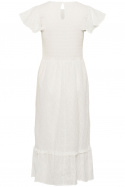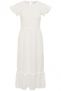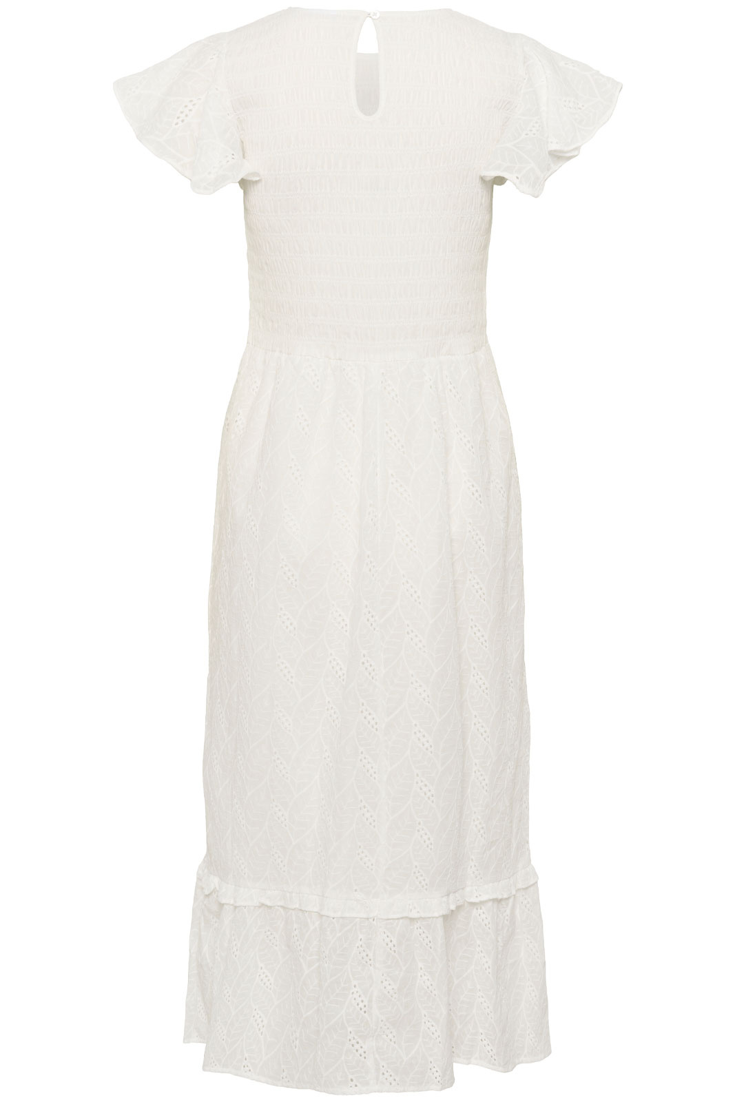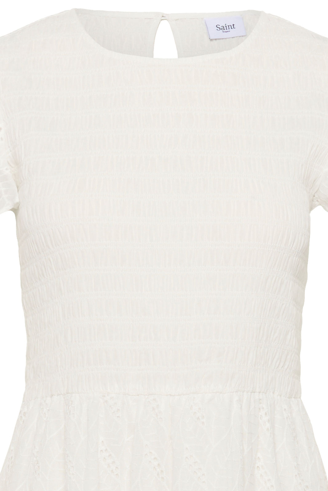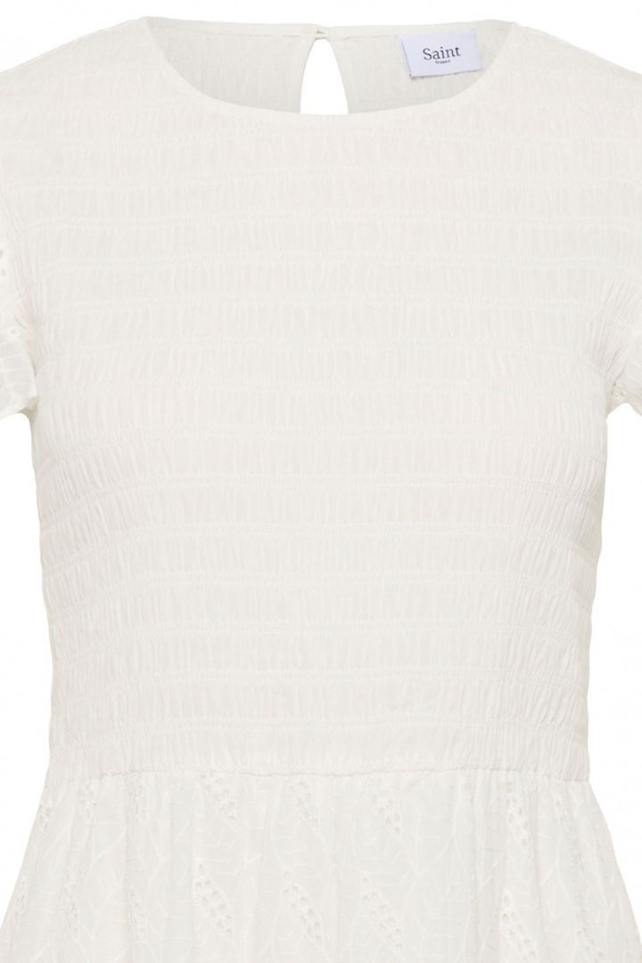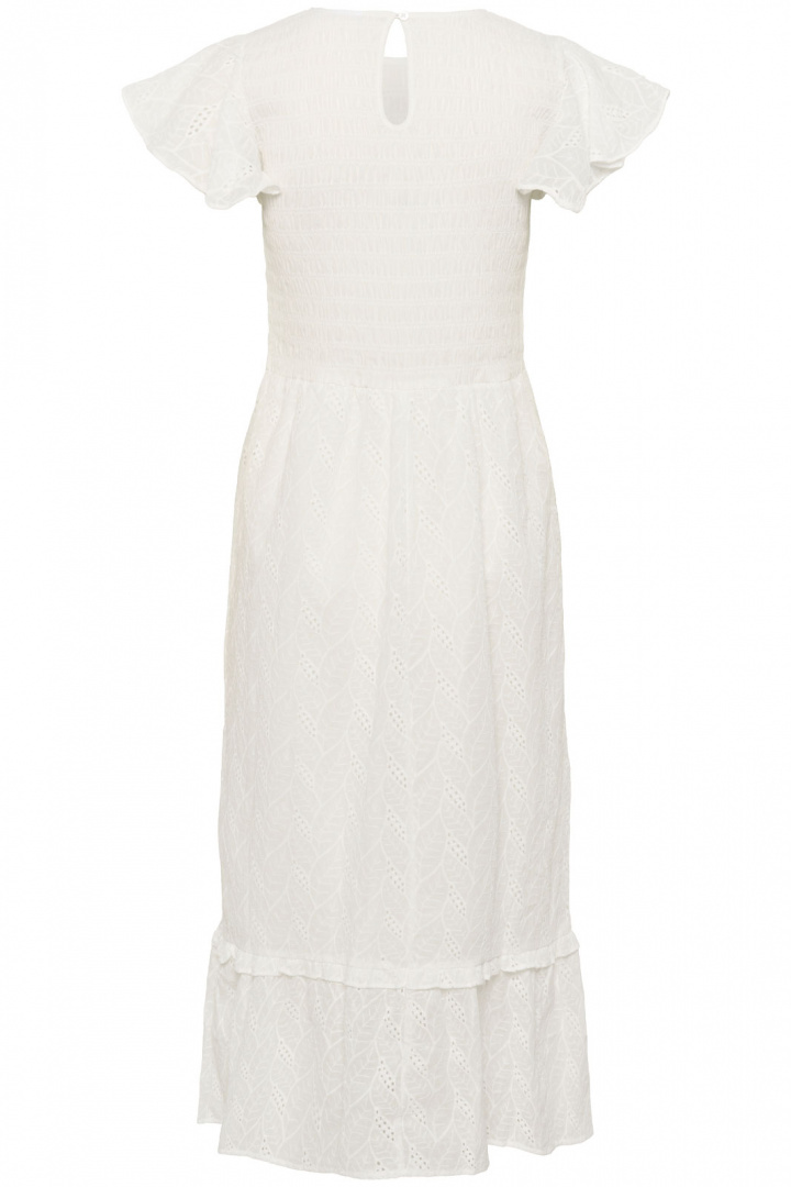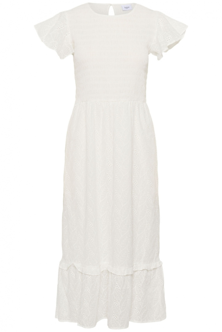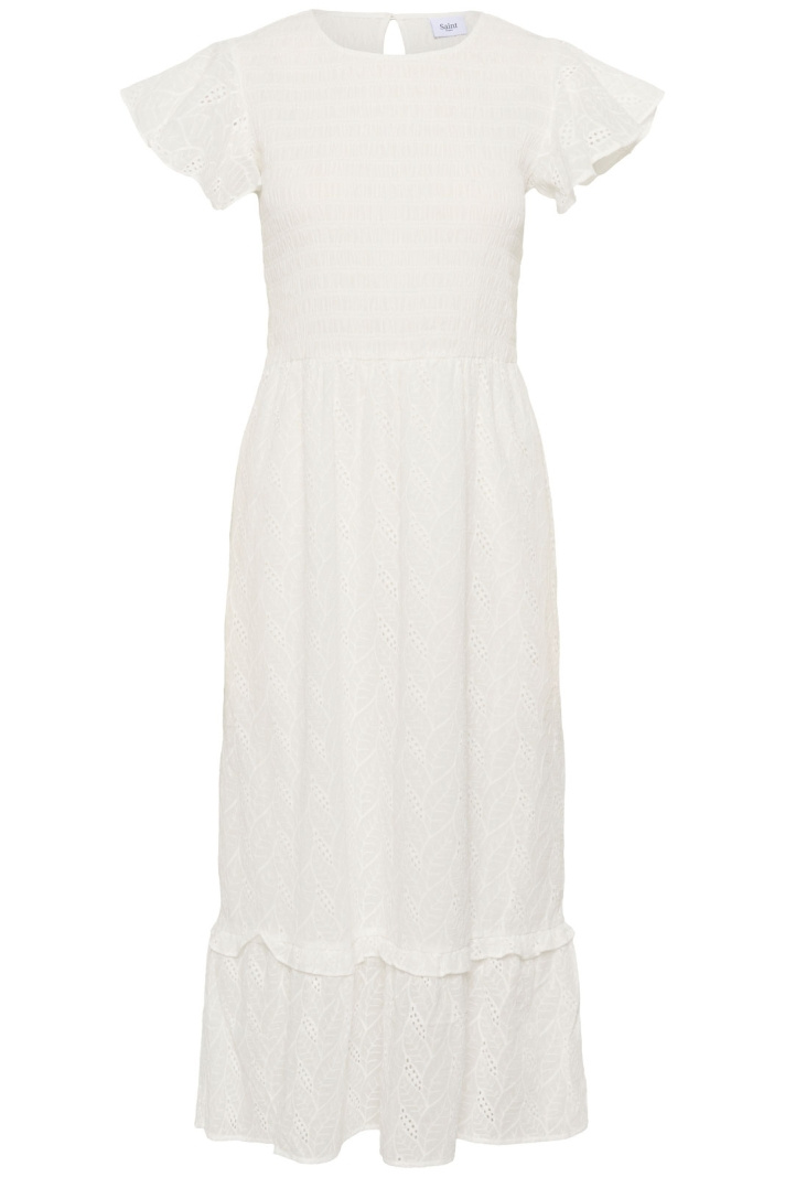 Kiandrasz Dress är en tidlös damklänning från Saint Tropez som kombinerar enkel elegans med hög komfort. Den har en normal passform som följer kroppen utan att sitta åt, en rundad halsringning och en knappt detalj i nacken som gör den enkel att ta av och på. Det broderade mönstret ger klänningen en subtil, exklusiv prägel som passar både vardag och fest.