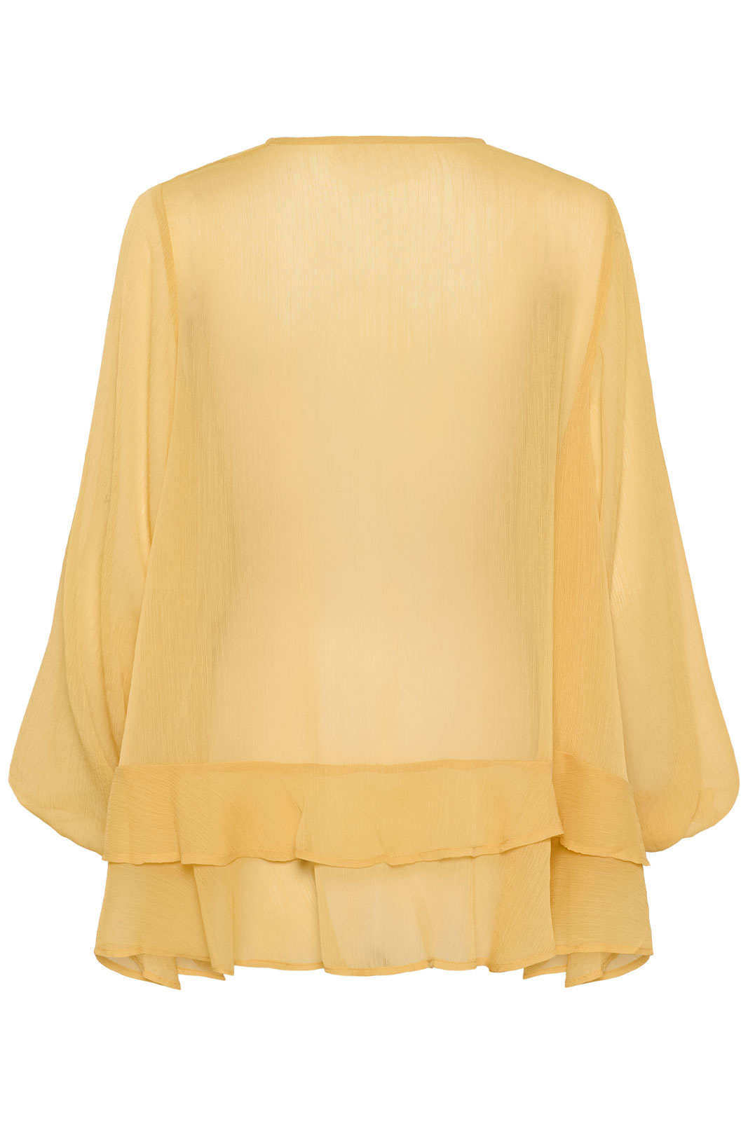 Upptäck Lindzysz Blouse från Saint Tropez - en damblus i normal passform som förenar tidlös elegans med vardagskomfort. Den V-ringade halsen skapar ett smickrande och mjukt uttryck som passar både till kontoret och till mer avslappnade outfits. Resåren i ärmsluten formar en snygg volangkant och ger blusen en romantisk, lekfull detaljerad touch som rör sig vackert när du rör dig. Tillsammans med volangdetaljerna får plagget en vårfräsch känsla som lyfter hela looken utan att kännas överdriven.
