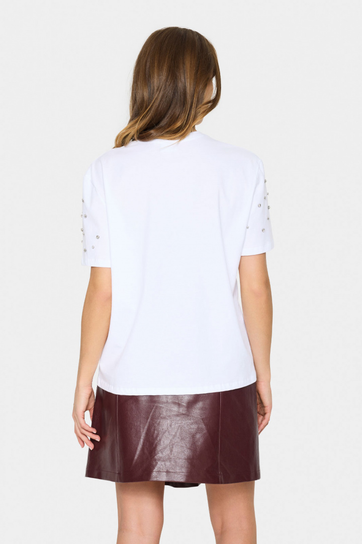 T-shirts från Saint Tropez.Lycianasz T-shirt.Artikelnummer: 30514235- Normal passform- Rund halsringning- Strass detaljer- T-shirt damLycianasz T-shirt från Saint Tropez - En tidlös klassiker för modemedvetna damerUpptäck den eleganta Lycianasz T-shirten från Saint Tropez, designad för att ge en sofistikerad och samtidigt avslappnad look. Denna damt-shirt har en normal passform som enkelt anpassar sig efter din kropp, vilket gör den både bekväm och smickrande.Tillverkad i 100% bomull erbjuder Lycianasz T-shirten en mjuk och skön känsla mot huden. Bomull är ett andningsbart material som gör den perfekt för både vardagsbruk och festliga tillfällen. Du kan lita på att denna t-shirt håller sin form och färg tvätt efter tvätt.Designad med en klassisk rund halsringning ger denna t-shirt en tidlös känsla som aldrig går ur modet. De stilfulla strassdetaljerna adderar en subtil glans och gör att du kan klä upp outfiten med minimal ansträngning. Detta gör Lycianasz T-shirten till det perfekta valet för den modemedvetna kvinnan som vill ha något extra i sin garderob.Det här plagget är mer än bara en vanlig t-shirt; det är ett mångsidigt basplagg som kan stylas på flera sätt. Bär den med jeans för en avslappnad look eller kombinera den med en kjol för en mer festlig stil. Tack vare sin tidlösa design och högkvalitativa material är detta ett plagg du kommer att använda gång på gång.Investera i Lycianasz T-shirten från Saint Tropez och upplev en perfekt balans mellan stil och komfort!Tack för att du handlar i vår webbshop. Besök oss även i vår butik i Vingåker. Läs mer på www.vfo.se