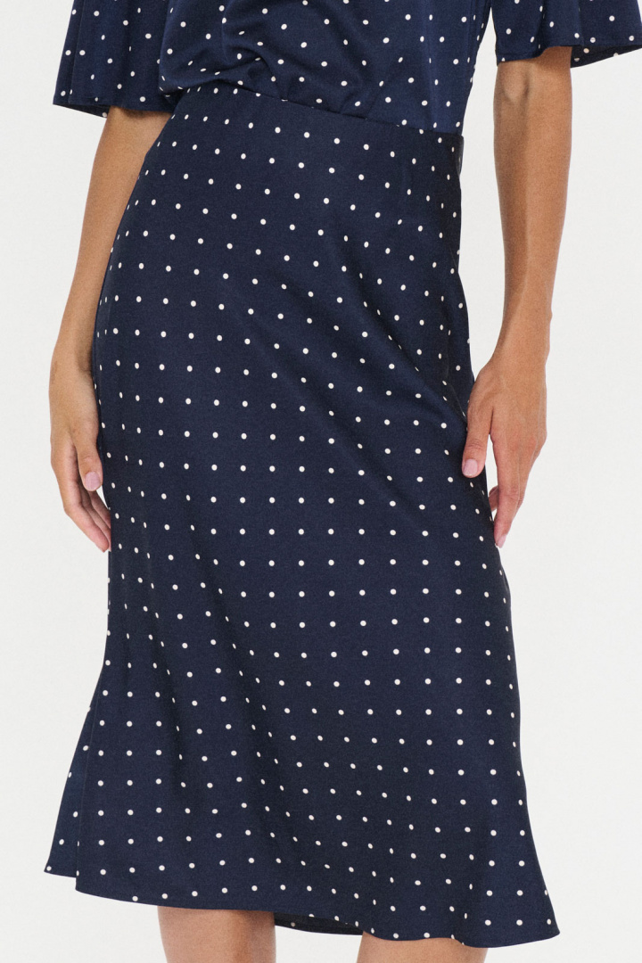 Magaliesz Skirt Kjol från Saint Tropez är en damkjol som förenar klassisk prickig elegans med en modern, bekväm passform. Den raka siluetten och den normala midjan ger en ren, stilren look som passar både vardag och mer uppklädda tillfällen. En bekväm resårlinning i midjan gör kjolen enkel att bära och anpassar sig naturligt efter kroppens rörelser utan att kompromissa med stilen. Den prickiga ytan ger en tidlös charm som enkelt kan stylas upp eller ned beroende på tillfälle.