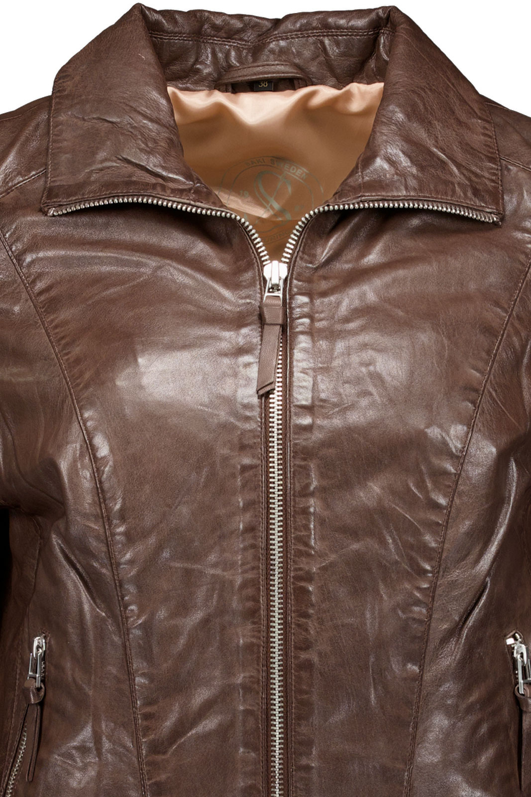 Annalee Jacket från Saki är en damskinnjacka i lammnappa med normal passform som smidigt balanserar tidlös elegans med vardagsfunktion. Den rena fronten med dragkedja ger en snygg silhuett som passar både till jeans för vardagssnyggt och till klänning för en lite mer uppklädd look. De två fickorna med dragkedja erbjuder praktisk förvaring utan att bryta designen, så att dina småsaker alltid är nära till hands.