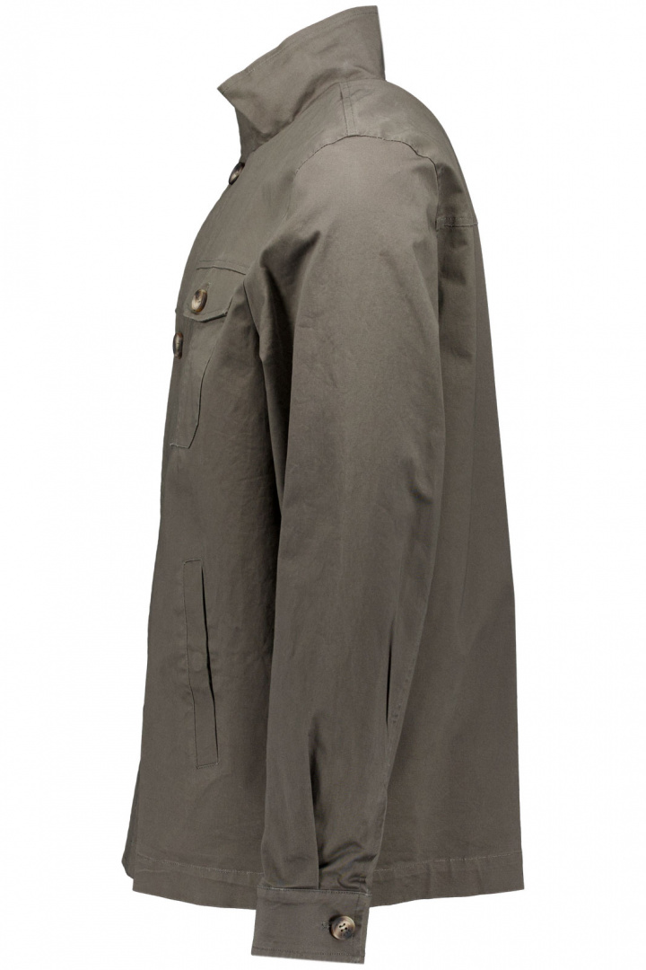Tim Jacket Jacka från Saki är en herrjacka i normal passform som kombinerar klassisk, mångsidig stil med praktiska detaljer. Framtill sitter en knappknäppning som gör det enkelt att justera öppningen, och den fyrkantiga manschetten ger en distinkt, modern touch. Förvaring är väl genomtänkt med två fickor med tryckknapp samt två bröstfickor med lock och knapp, så du alltid har plats för det viktigaste nära till hands.