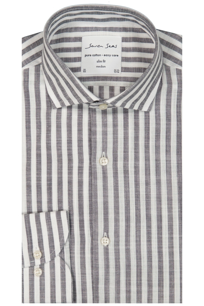 Skjorta från Seven Seas.Dario 22224.Artikelnummer: S22224- Slim fit- Cut away krage- Rund manschett- Knappknäppning framtill- Randig- HerrskjortaTack för att du handlar i vår webbshop. Besök oss även i vår butik i Vingåker. Läs mer på www.vfo.se