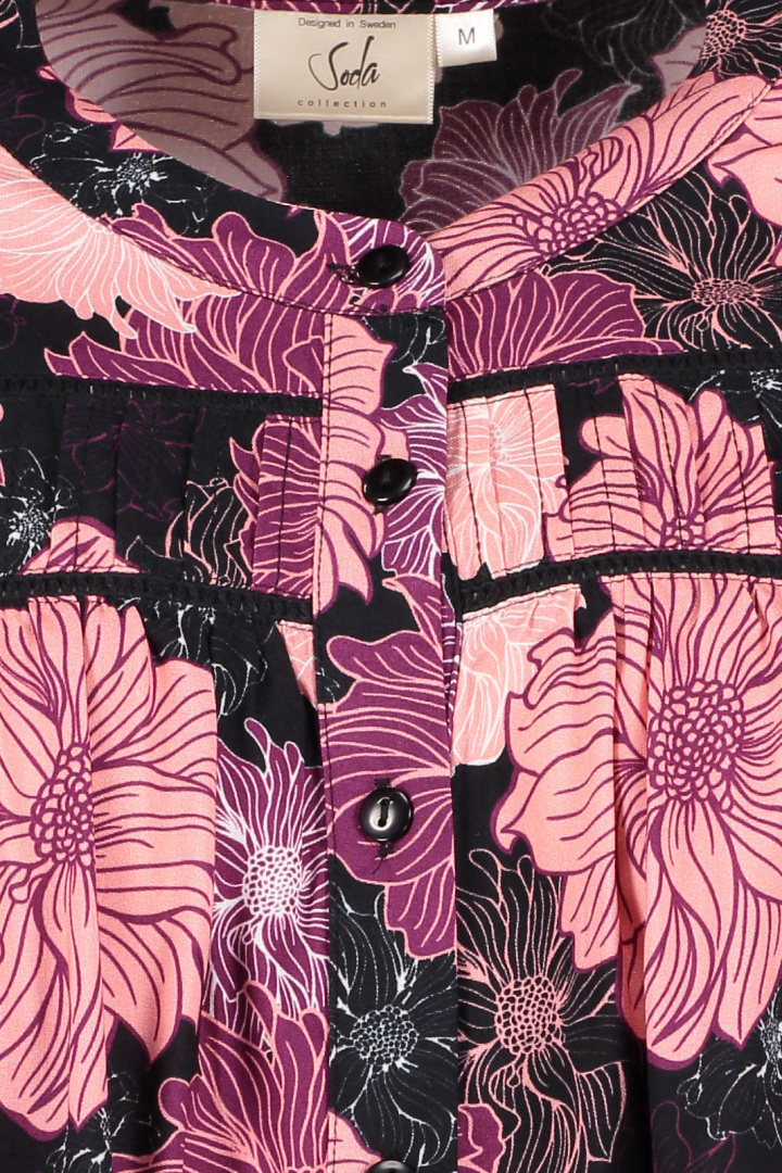 Blus från Soda.Blus 25102 Soda.Artikelnummer: H25102- Normal passform- Klassisk krage- Fyrkantig manschett- Knappknäppning framtill- Band i midjan- Blus damBlus 25102 Soda - Elegant och mångsidig blus för damUpptäck Blus 25102 Soda från det pålitliga märket Soda, en perfekt kombination av stil och komfort för den moderna kvinnan. Med sin normala passform och tidlösa design är denna blus ett måste i din garderob.Blusen har en klassisk krage och fyrkantiga manschetter som ger en elegant touch. Den stilrena knappknäppningen framtill bidrar till blusens tidlösa charm, samtidigt som bandet i midjan ger en smickrande silhuett som framhäver din figur.Tillverkad av 85% viskos och 15% polyamid, erbjuder Blus 25102 en behaglig känsla mot huden med god andningsförmåga. Viskosen ger en elegant glans och mjukhet, medan polyamiden bidrar till hållbarhet och formstabilitet, vilket gör att blusen behåller sin stil även efter flera tvättar.Denna blus är perfekt för både vardag och fest, och kan enkelt kombineras med jeans eller kjol för en avslappnad men ändå sofistikerad look. Med sitt eleganta utseende och bekväma materialval är Blus 25102 ett utmärkt val för dig som vill både se bra ut och känna dig bekväm.Gör ett smart val för din garderob och välj Blus 25102 Soda - där stil möter funktion!Tack för att du handlar i vår webbshop. Besök oss även i vår butik i Vingåker. Läs mer på www.vfo.se