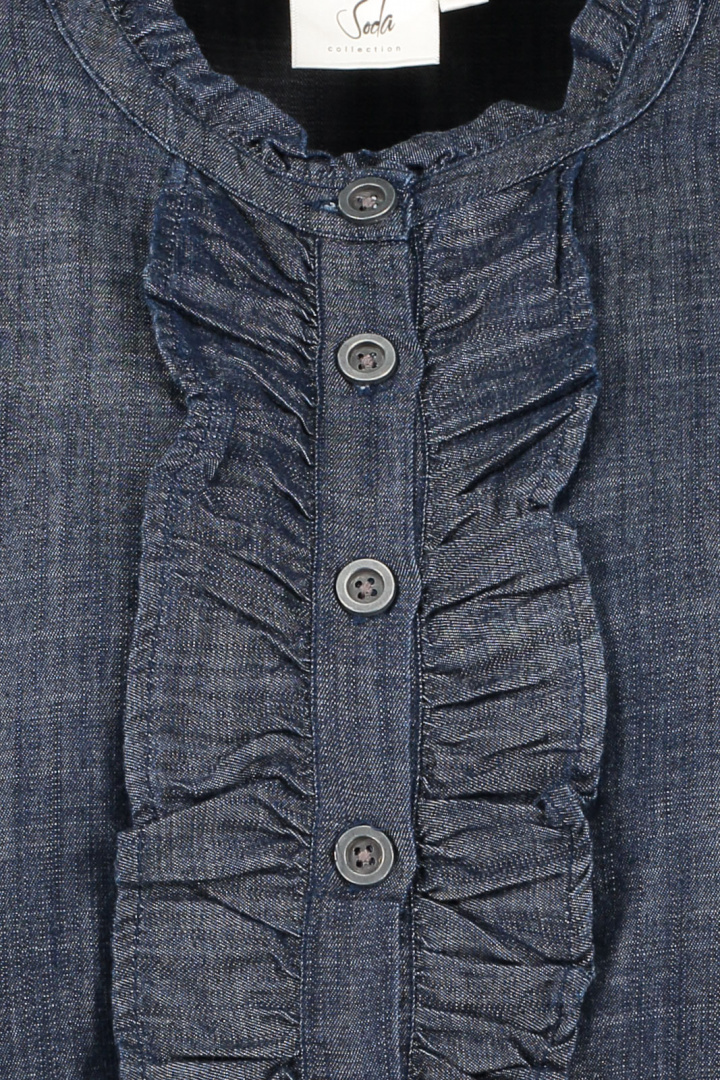 Blusar från Soda.Blus 25109 Soda.Artikelnummer: H25109- Normal passform- Rund halsringning- Volang framtill- Knappknäppning framtill- Fyrkantig manschett- Blus damSoda Blus 25109 - En Elegant Topp för Moderna KvinnorLägg till en tidlös och elegant touch till din garderob med blusen 25109 Soda. Denna blus, designad för kvinnor, har en normal passform som smickrar alla kroppstyper. Med en rund halsringning får du en stilren silhuett som lätt kan kombineras med både byxor och kjolar för varje tillfälle.Den fina volangen framtill ger blusen ett lätt och feminin utseende, vilket gör den perfekt för både arbete och festliga evenemang. Knappknäppningen framtill är både praktisk och dekorativ, vilket skapar en känsla av elegans.Framstående detaljer som de fyrkantiga manschetterna ger blusen en modern twist och en unik karaktär. Dessa små detaljer gör stor skillnad, vilket gör att du alltid ser välklädd ut.Tillverkad av 100% Tencel, är denna blus inte bara stilren utan också skön att bära. Tencel är känt för sina mjuka och lätta egenskaper, vilket ger en komfortabel känsla mot huden och gör blusen perfekt för både varma och svala dagar.Välj blus 25109 Soda för att få en mångsidig klädnad som enkelt kan stylas upp eller ner beroende på tillfälle. Gör ett smart val för din stil och komfort - investera i en blus som fyller din garderob med elegans och funktionalitet. Perfekt för den moderna kvinnan som uppskattar stil och kvalitet!Tack för att du handlar i vår webbshop. Besök oss även i vår butik i Vingåker. Läs mer på www.vfo.se