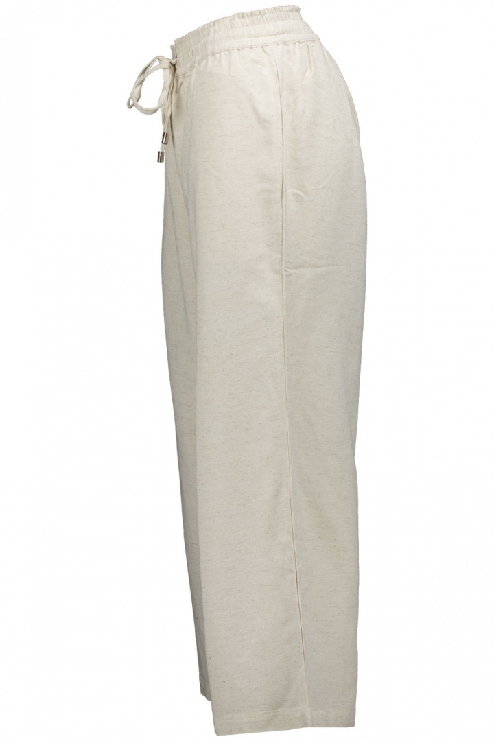 Materialet är noga utvalt för komfort och hållbarhet: en mjuk och andningsaktiv blandning bestående av 40% bomull, 10% linne och 50% viskos. Denna bomull-linneh-viskos-blandning ger en sval, följsam känsla mot huden, med bra drapering och naturlig lyster som passar utmärkt för sommar och varma dagar. Denna sammansättning gör Capri 26101 till ett praktiskt och lättburet val för både fritid och mer avslappnade arbetsdagar.
