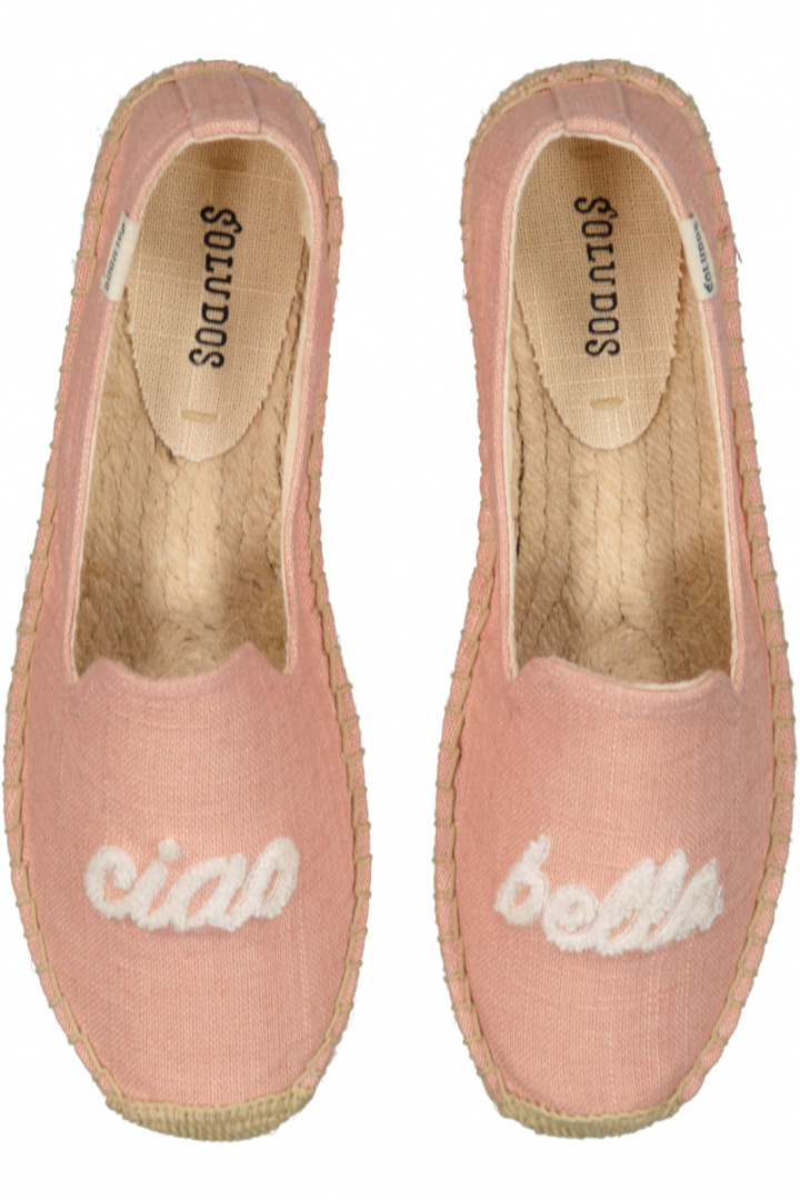 Espadrillos från Soludos.Sol W Ciao Bella Smkg Slipper.Artikelnummer: SO1000330- Utsida: textil- Insida: textil- Yttersula: gummi, textil- Broderad logotypTack för att du handlar i vår webbshop. Besök oss även i vår butik i Vingåker. Läs mer på www.vfo.se