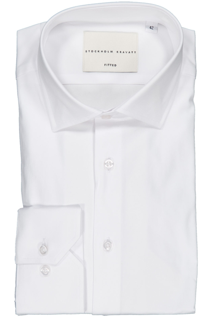 Sth Kravatt 5123 Fitted Skjorta från Stockholms Kravatt presenterar en herrskjorta i regular fit som kombinerar en cleant, modern look med verklig komfort. Denna skjorta är utrustad med en cut away-krage som ger en aktuell profil och fungerar lika bra utan slips som med, vilket gör den mycket mångsidig för kontor och fritid. Frontknäppningen håller en ren och enkel linje, medan den vinklade manschetten ger en distinkt detalj som förstärker den snygga passformen vid handlederna. Tillverkad i 100% bomull känns den mjuk mot huden, andas väl och är hållbar för dagligt bruk. Denna skjorta är ett bra val om du söker en stilren bas i garderoben som enkelt kan kombineras med både kostymbyxor och jeans. Välj Sth Kravatt 5123 Fitted Skjorta för en tidlös design med praktiska detaljer som står upp till vardagens krav.