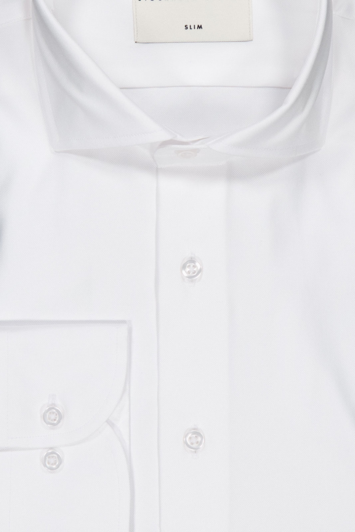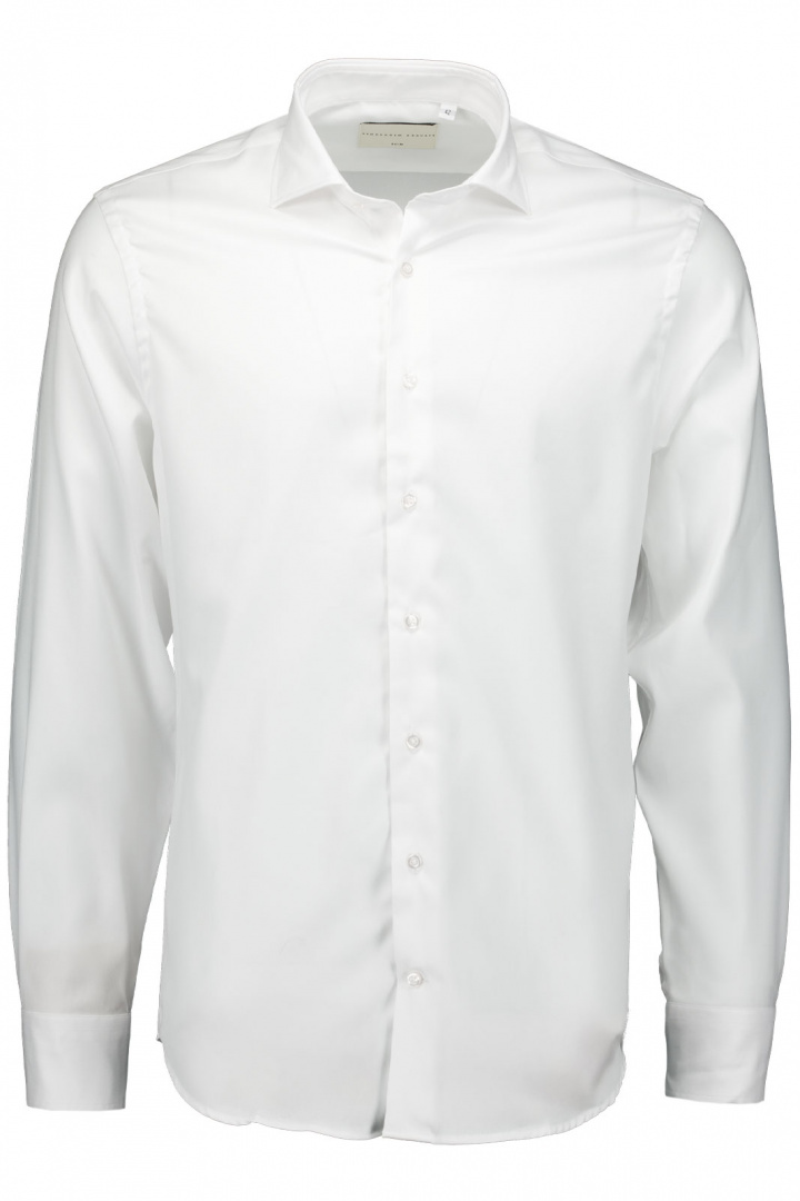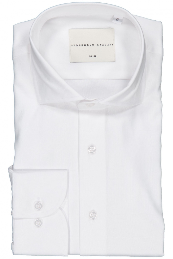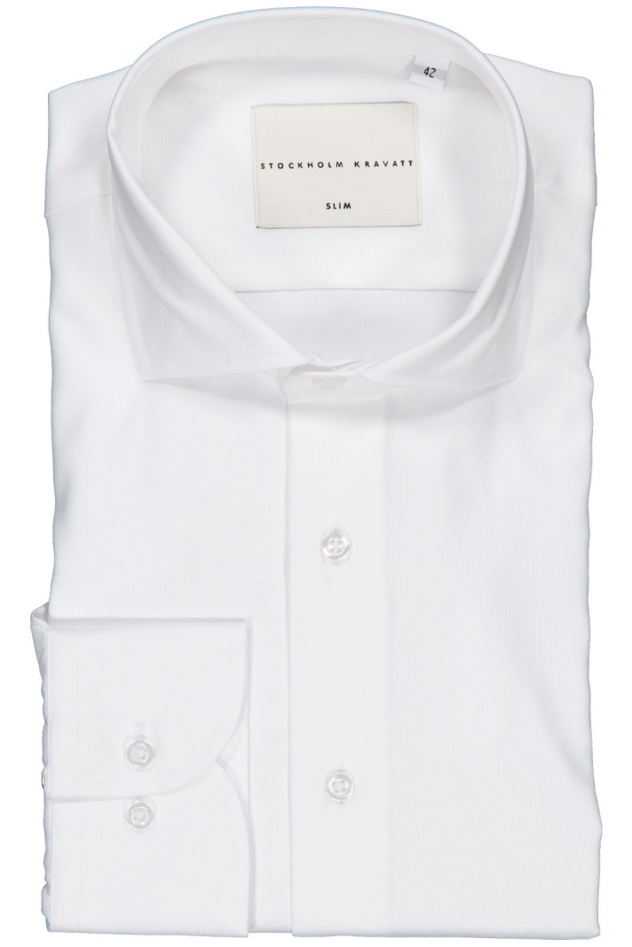 Upptäck Sth Kravatt 5280 Slim Skjorta från Stockholms Kravatt - en herrskjorta i slim fit som förenar modern silhuett med klassisk vardags- och arbetstidsstil. Tillverkad i 100% bomull erbjuder den naturlig komfort och god andningsförmåga genom hela dagen. Denna skjorta kännetecknas av en cut away-krage som ger en ren, samtida look och passar både vid formella tillfällen utan slips och i smart casual outfits.
