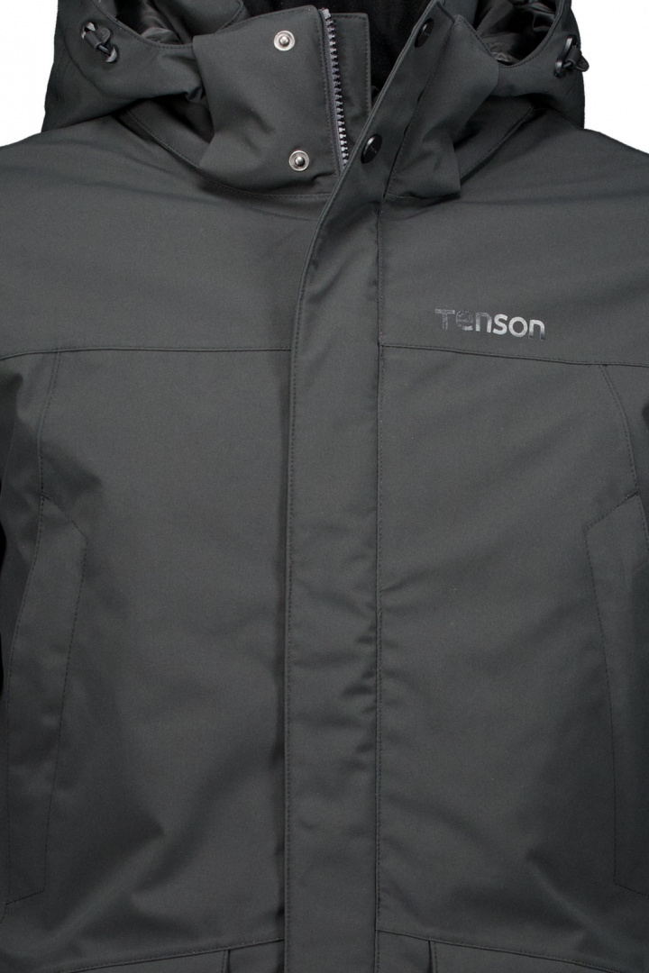 Harris Jacket Men från Tenson är en vinterjacka för herrar i normal passform som kombinerar stilren design med verkliga väderegenskaper. Den avtagbara luvan med dragsko ger dig extra skydd mot snö och vind när det behövs, samtidigt som den dolda dragkedjan framtill ger en ren, tidlös look. Jackan är utrustad med flera praktiska fickor: två snyggt placerade fickor med dragkedja, två fickor med lock och tryckknapp samt två bröstfickor med dragkedja, så du har plats för telefon, plånbok och småprylar utan att kompromissa medytan. Ett kardborrespänne i ärmslut gör det enkelt att anpassa passformen runt handlederna, och en justerbar dragsko längst ned håller vind och kyla ute när du behöver det som mest.